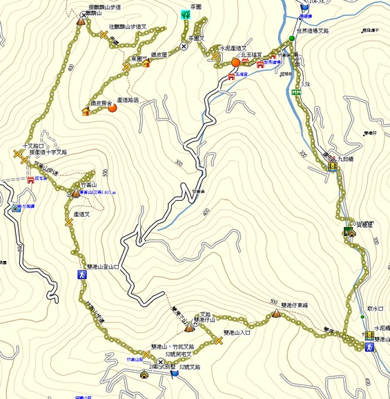 09:29 產道叉,左回竹崙山或陡下山徑接產道後出【北天玉福宮】;取右往【竹坑山、雙港仔山】