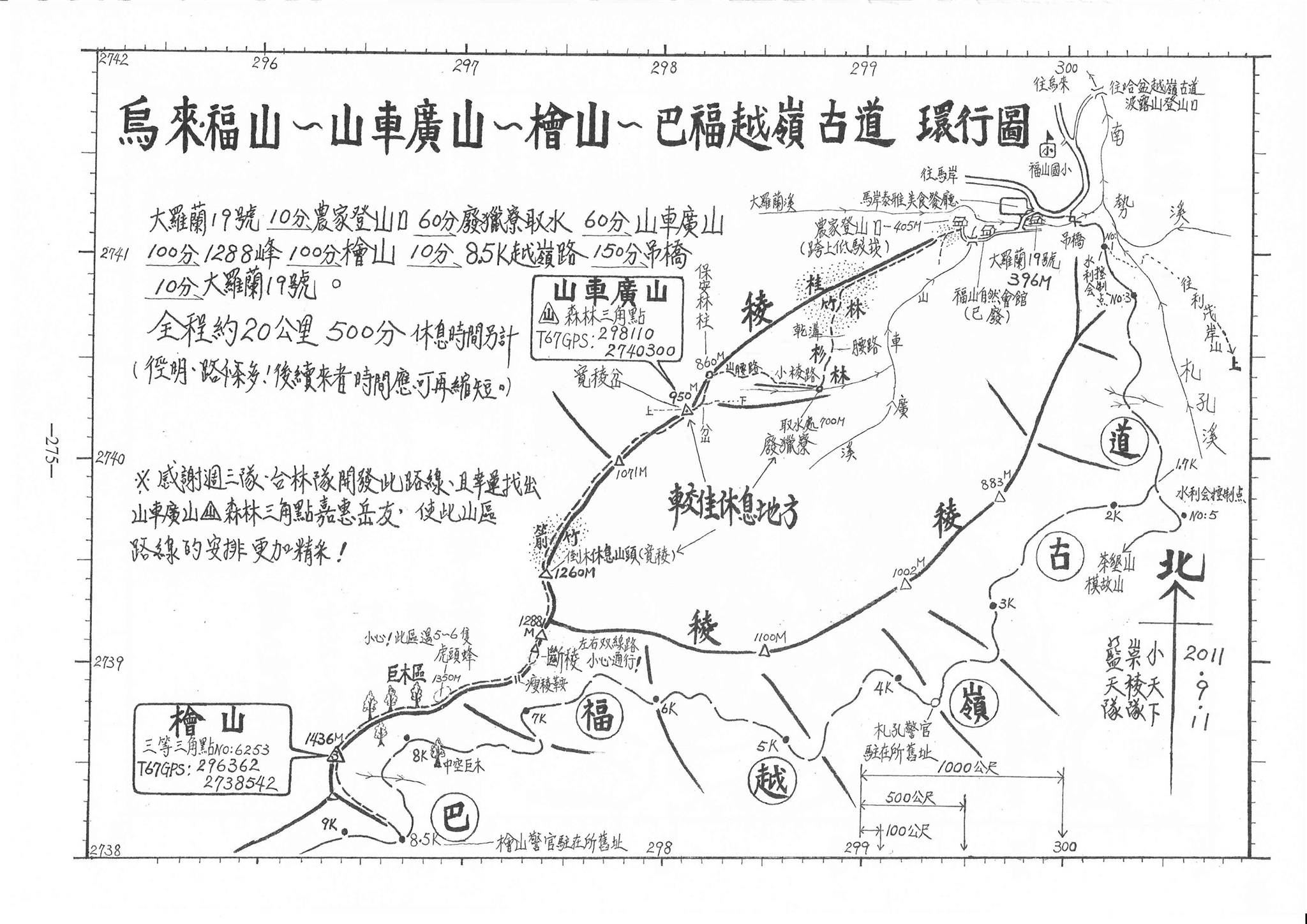 (十275) 烏來 福山~山車廣山~檜山~巴福越嶺古道 環行圖