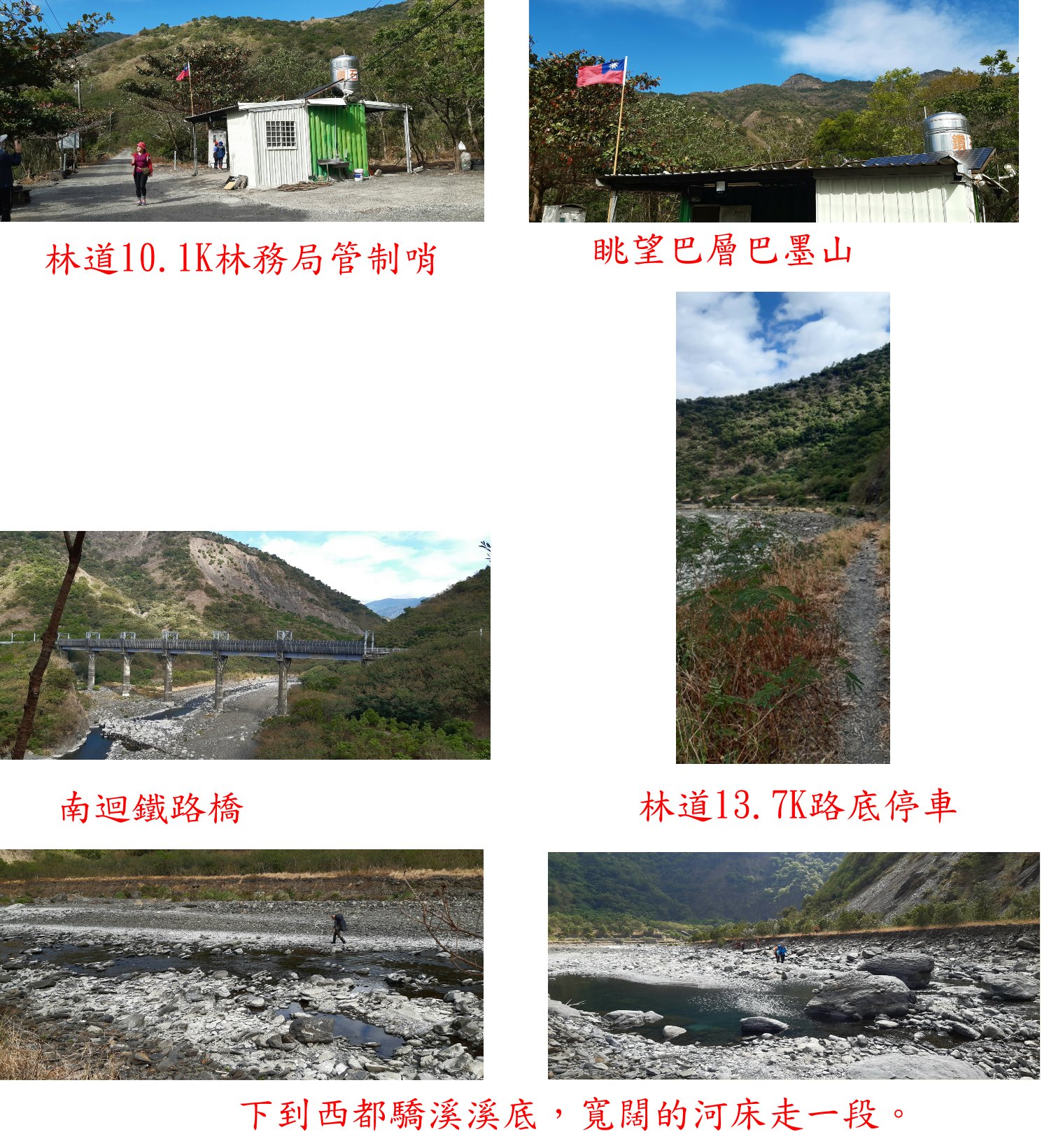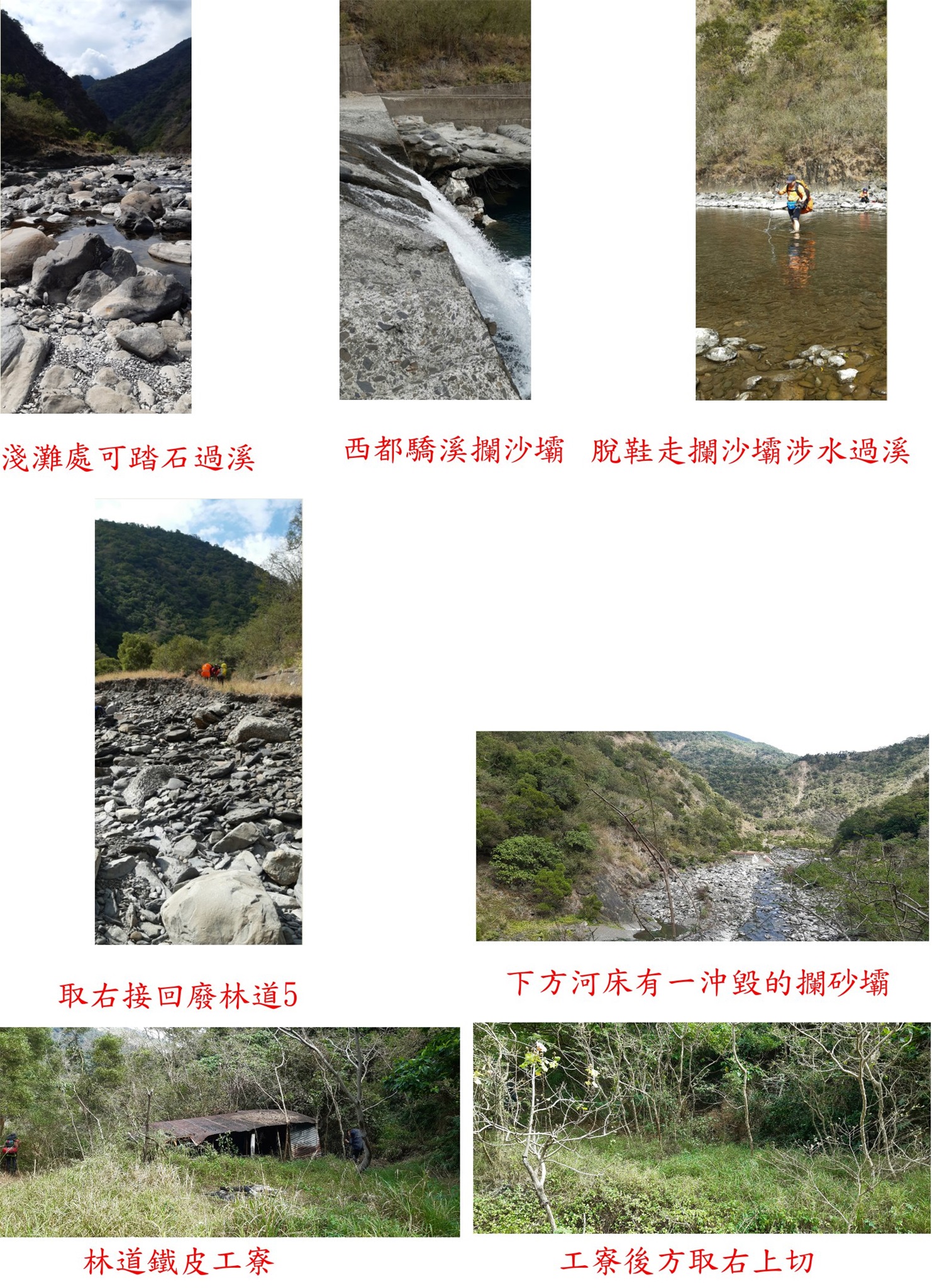 12:35左下至西都驕溪攔沙壩,清澈的溪流景色美麗;脫鞋走攔沙壩涉水至左岸,回程改走攔沙壩下方可踏石過溪不用涉水。