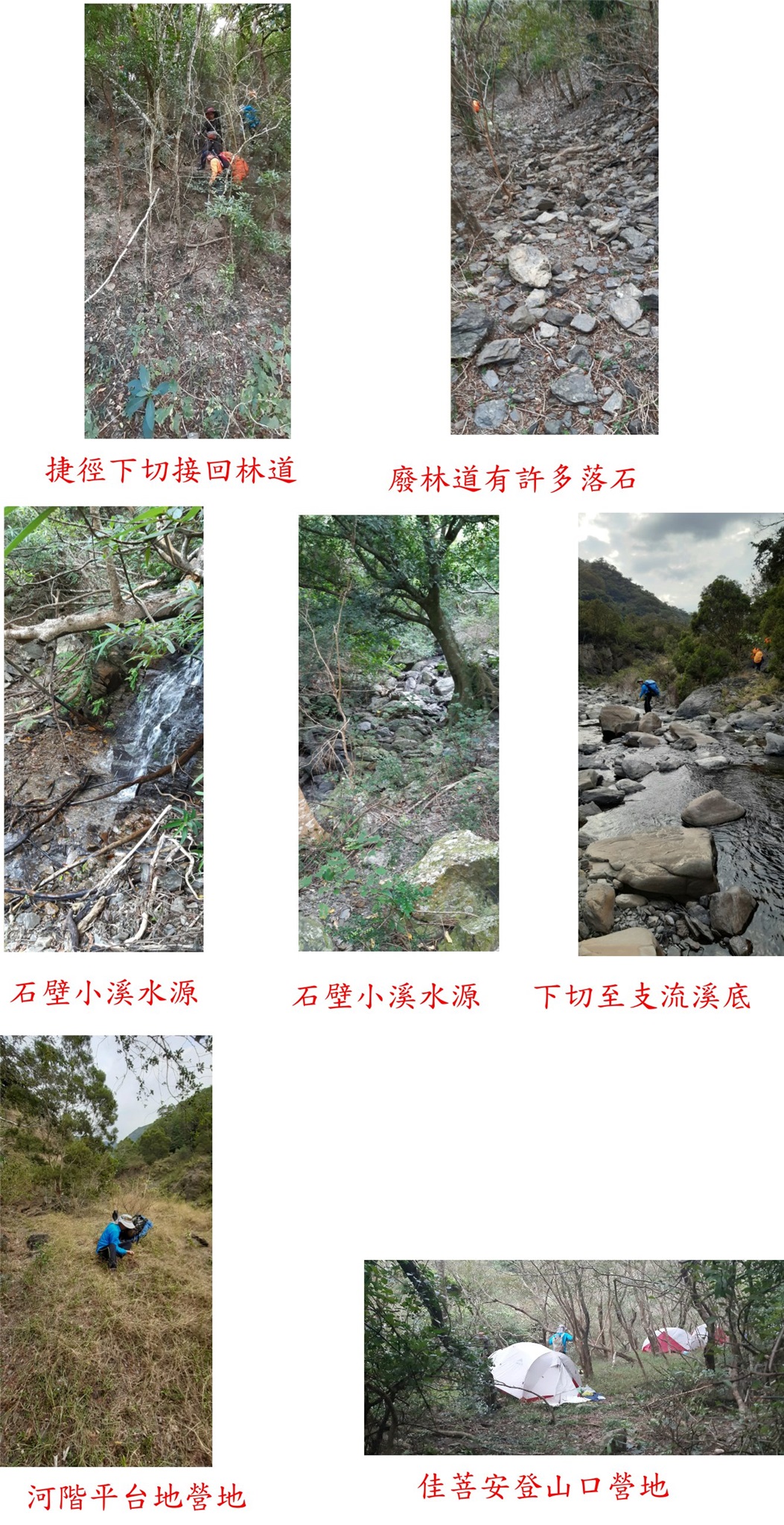 16:40佳菩安登山口營地,高383公尺,河階平台地不錯的營地,避風且柴火不缺,各自找地方紮營,晚餐後早早進入夢鄉;今日重裝累計路程9K、上坡