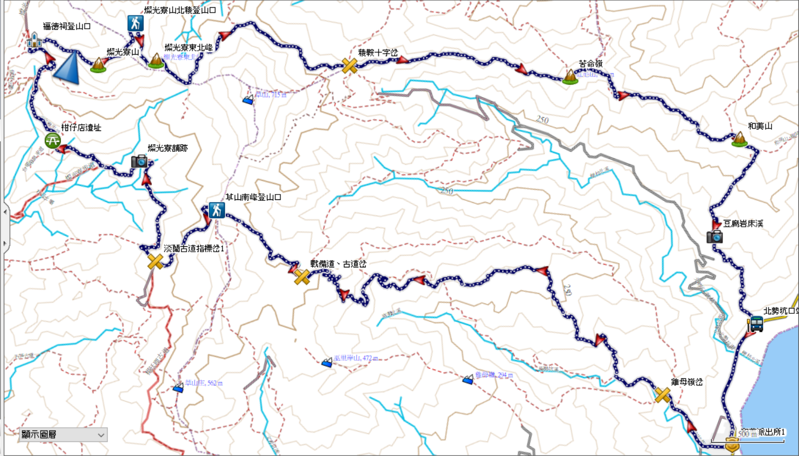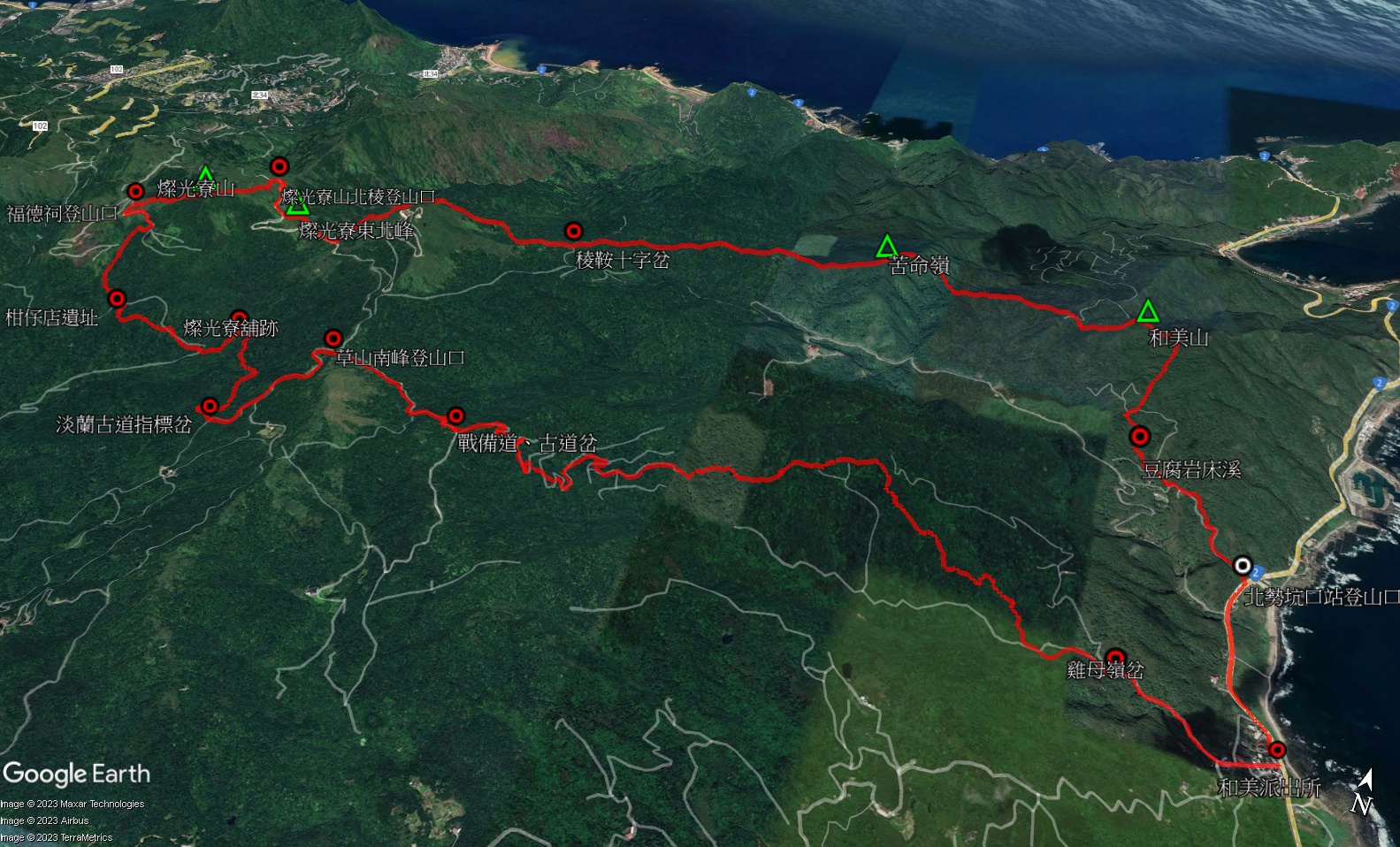 南勢坑古道→草山戰備道→楊廷理古道→燦光寮古道→