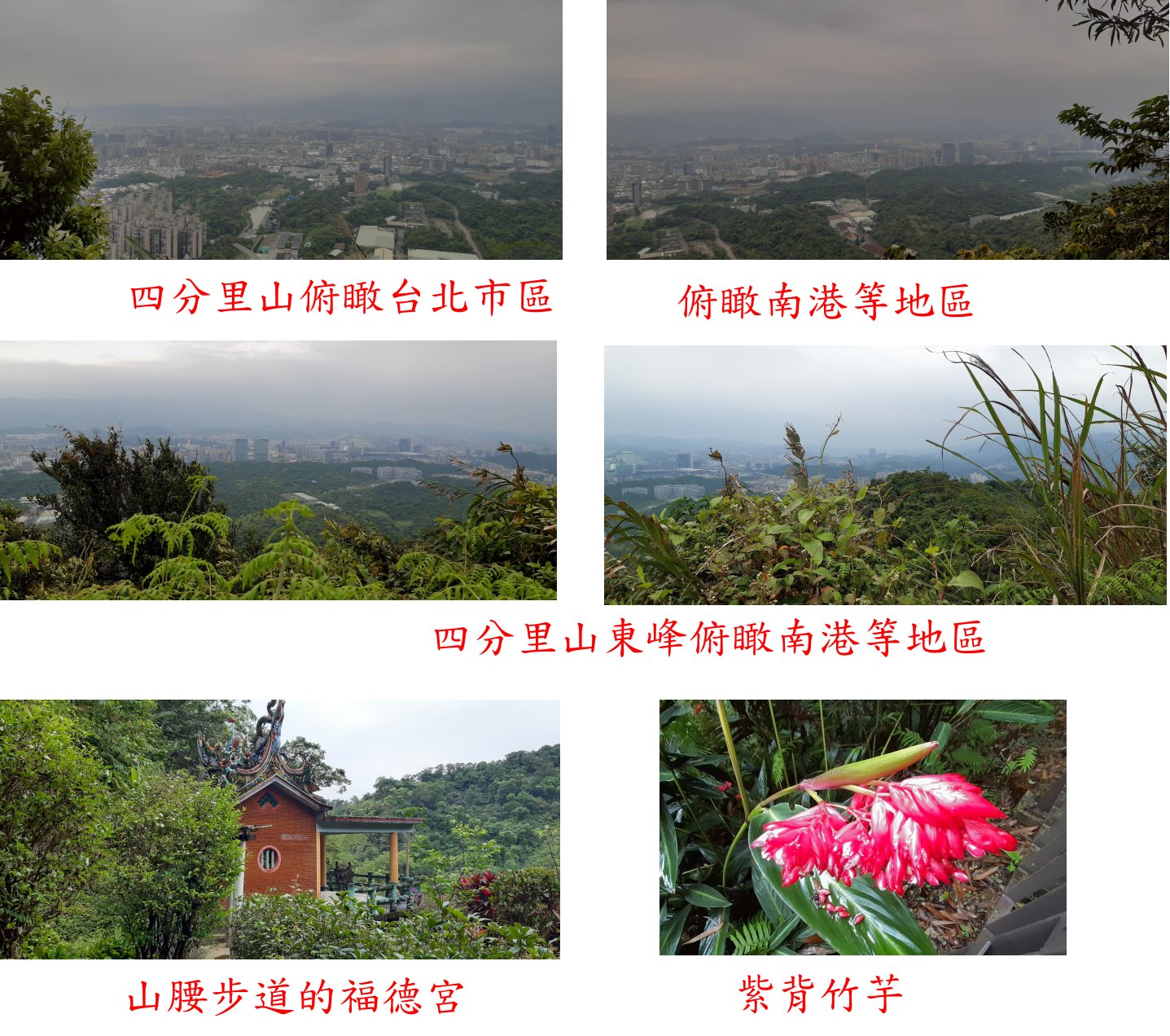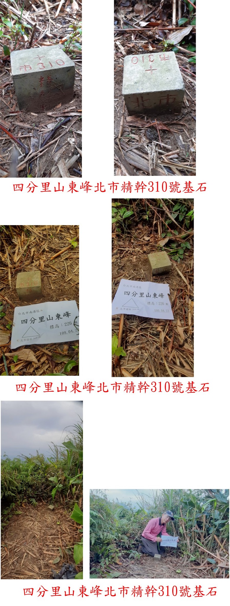 2、四分里山東峰:位於台北市南港區,標高226公尺,北市精幹310號基石;座標3097962770050。