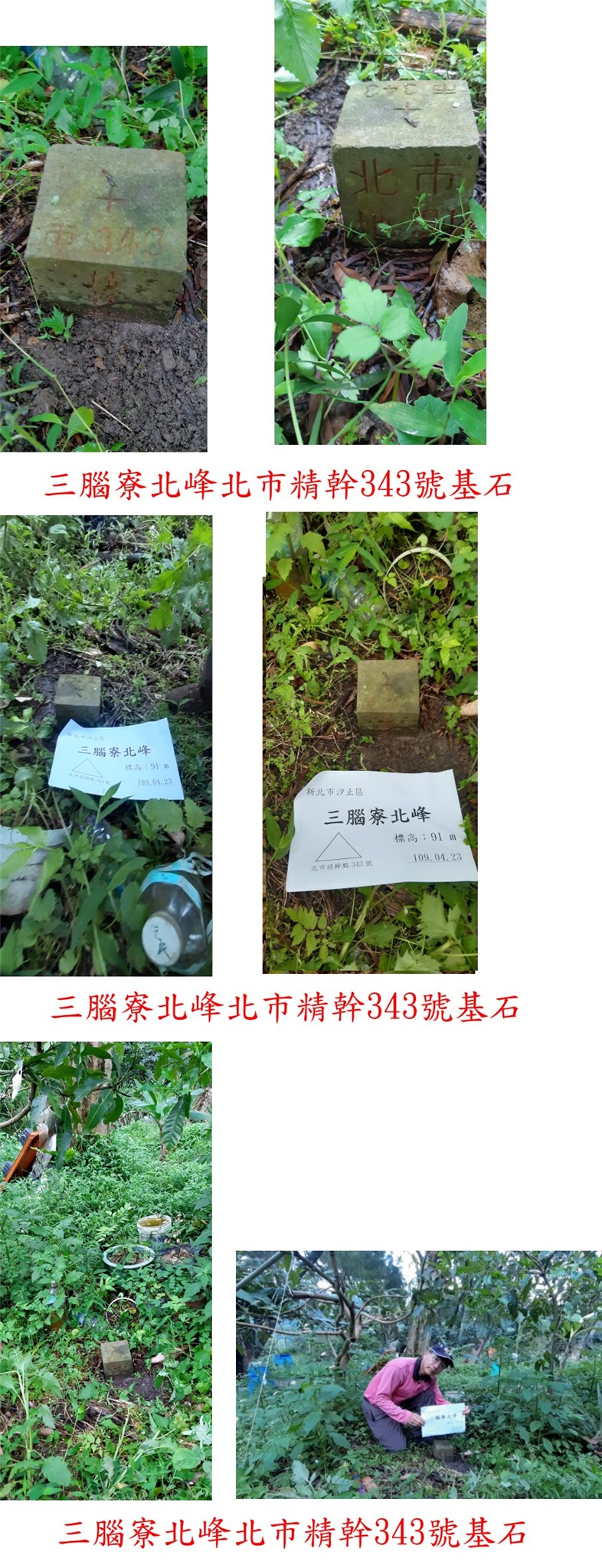 3、三腦寮北峰:位於新北市汐止區,標高91公尺,北市精幹343號基石;座標3132142770101。