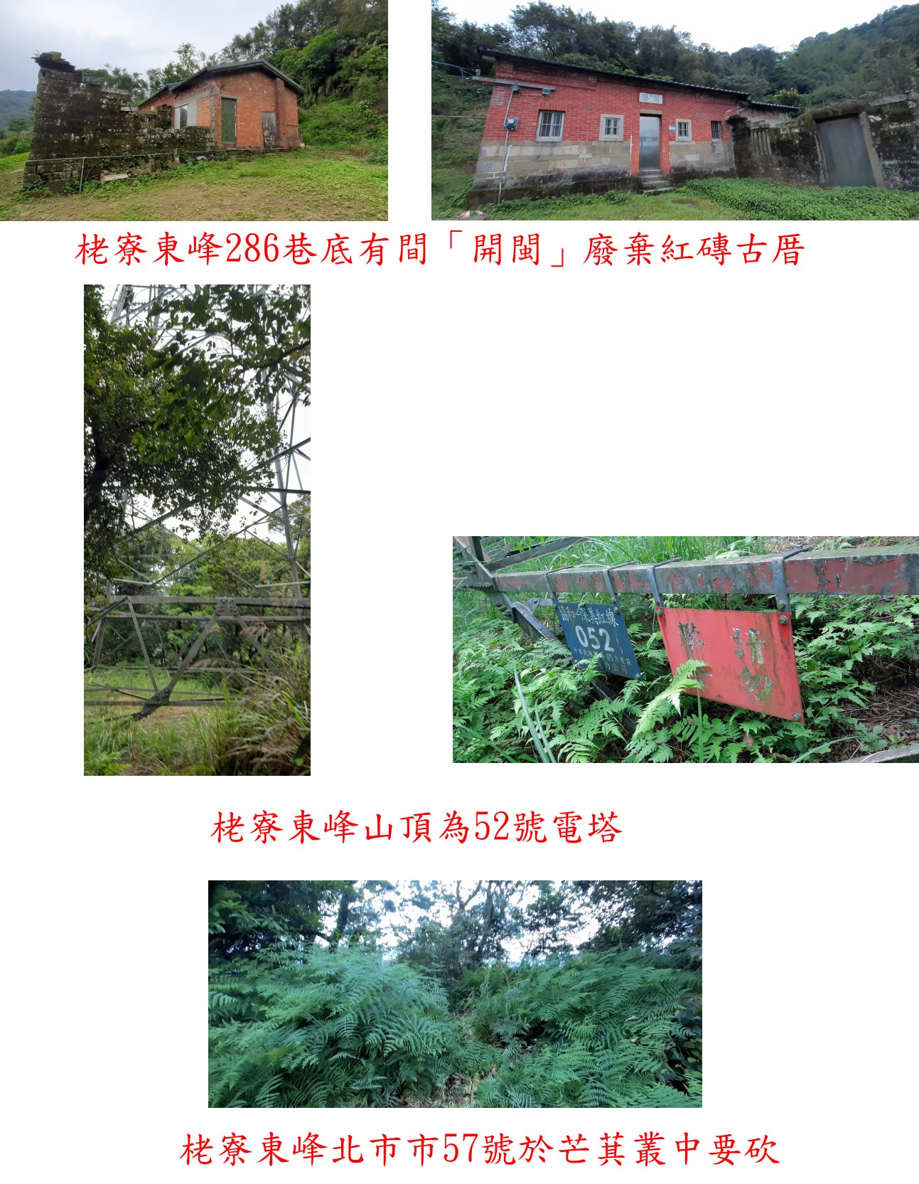 走10餘公尺路底有間「開閩」廢棄紅磚古厝,由屋後接明顯保線路小徑,前後種咖啡剛除草過,保線路走