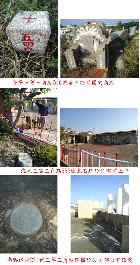 六、南興:位於台南市安南區,標高15公尺,聯勤測量隊內補231號三等三角點銅標。