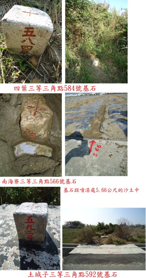 七、四葉:位於台南市安南區,標高3公尺,三等三角點584號基石。