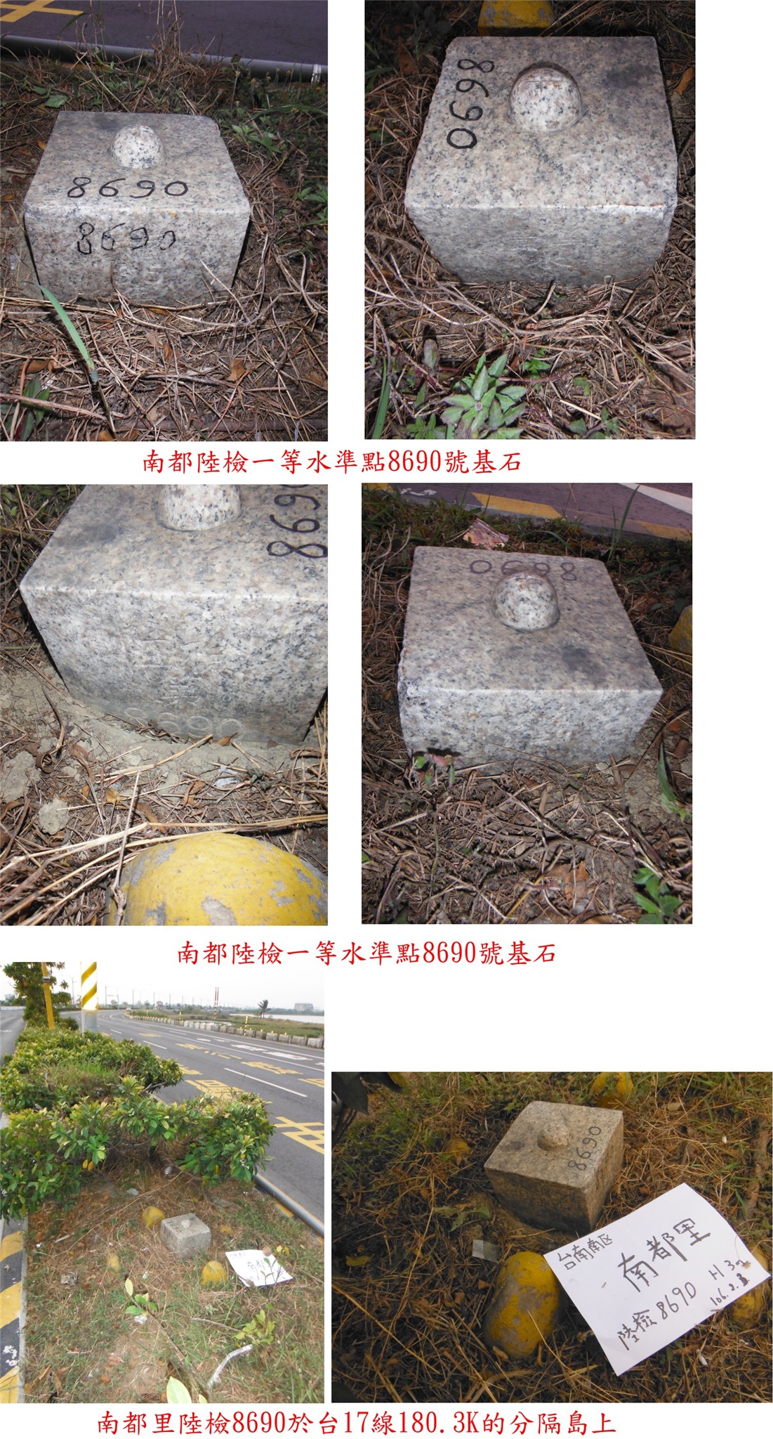 南都里的陸檢8690號水準點於台17線180.3K十字路口的分隔島上,也就是在超商左前方的安全島上,此點聯勤測量隊立於民國85年。