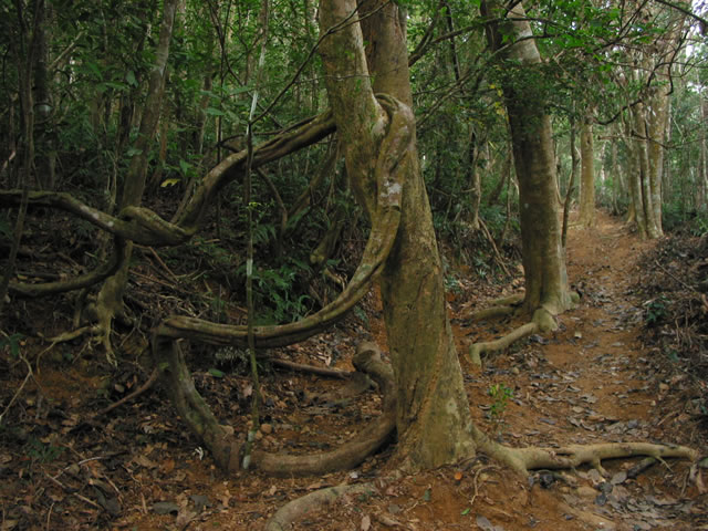 1.謝謝adamhs兄和 florida兄的解惑,還有些植物請幫忙鑑定一下。 2.浸水營古道上的植物(二) 11.花期剛過? 12.攀附在九芎上的某種藤? 13.及已(四葉蓮)? 14.血藤? 15.蕨類? 16.平行葉脈,厚而硬。 17.印度鞭藤。 18.??? 19.??? 20.長得像青剛櫟一樣的果實? 21.松蘿嗎?