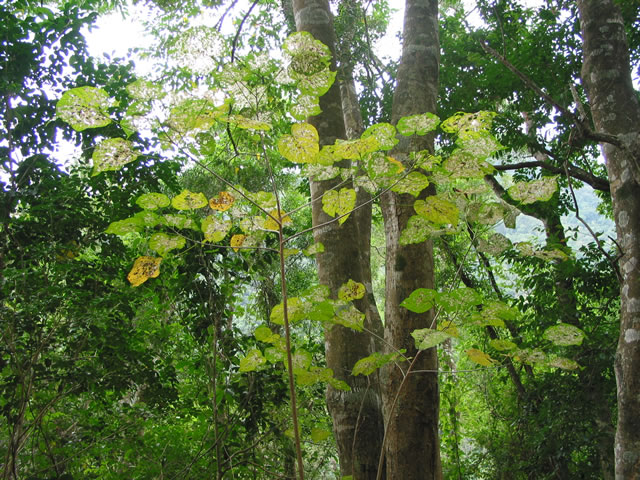 照片十二的藤本植物,我在屏東的佳菩安山也有看到現將其葉和葉的照片附上供大家參考,我也很想知道牠的名稱。