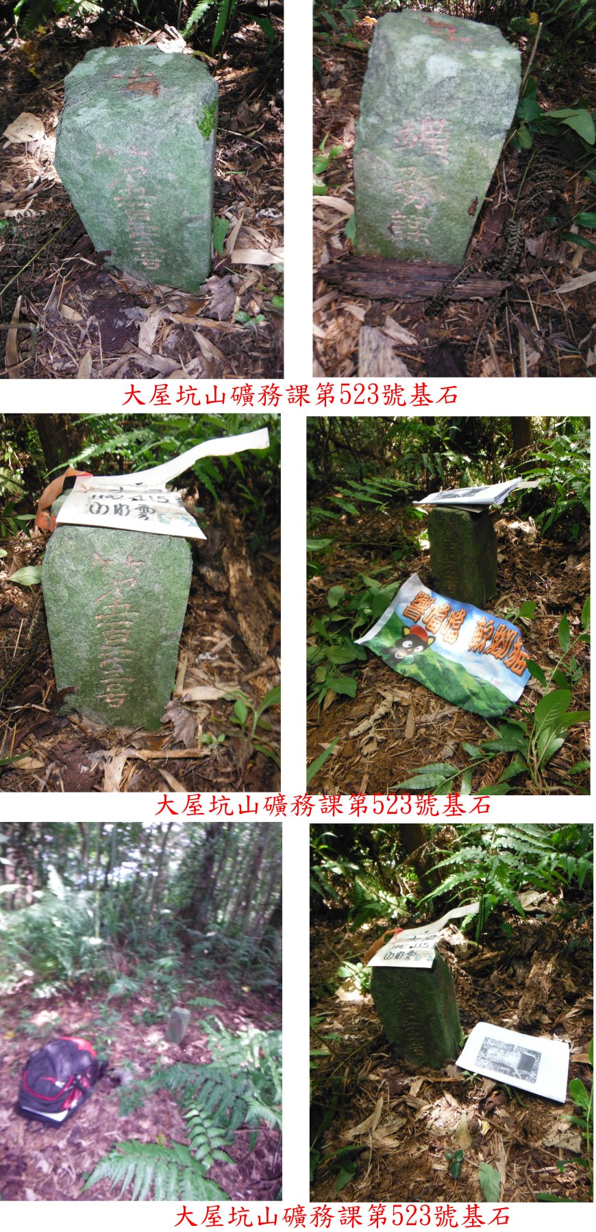 3、大屋坑山:位於苗栗縣南庄鄉,標高425公尺,礦務課第 523號基石。