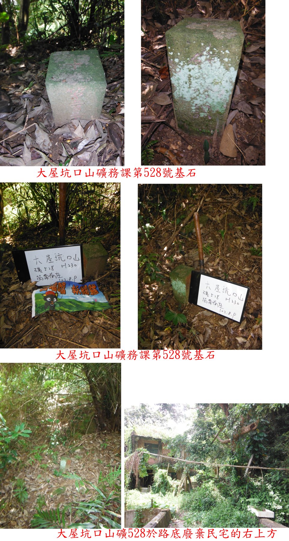 2、大屋坑口山:苗栗縣南庄鄉,標高230公尺,礦務課第 528號基石。