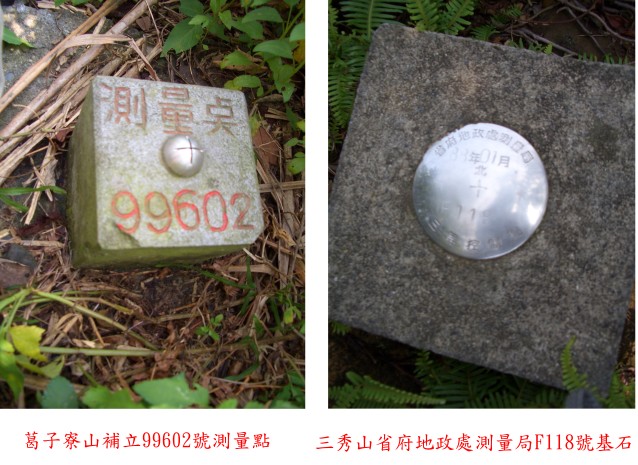 2葛子寮山-又稱昊天嶺,位於台北縣汐止市,標高69公尺,土地調查局圖根點,GPS(314568 2773362),原點應已遺失?另立有一顆99602號測量點。