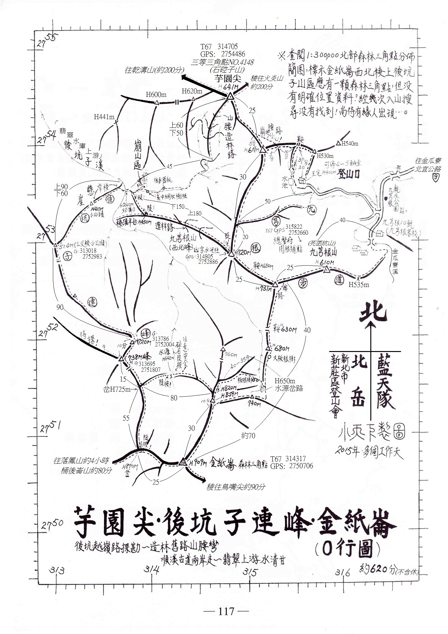 (十二117) 芋園尖、後坑子連峰、金紙崙O行2015年
