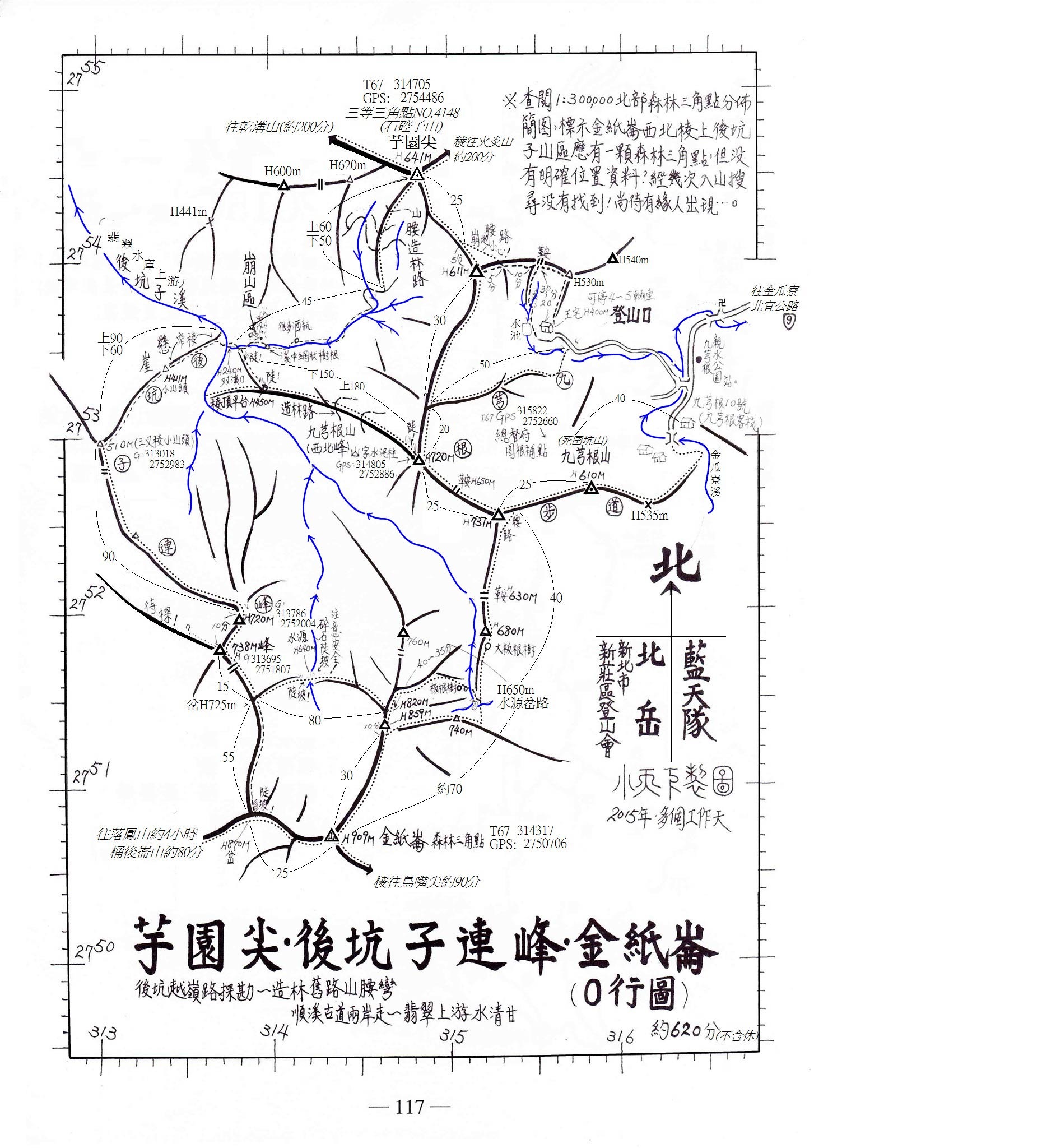 (十二117) 芋園尖、後坑子連峰、金紙崙O行圖