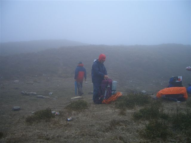 0759 出發,0807通過鞍部,由GPS研判左側應該有一大片營地,可惜能見度太低了。