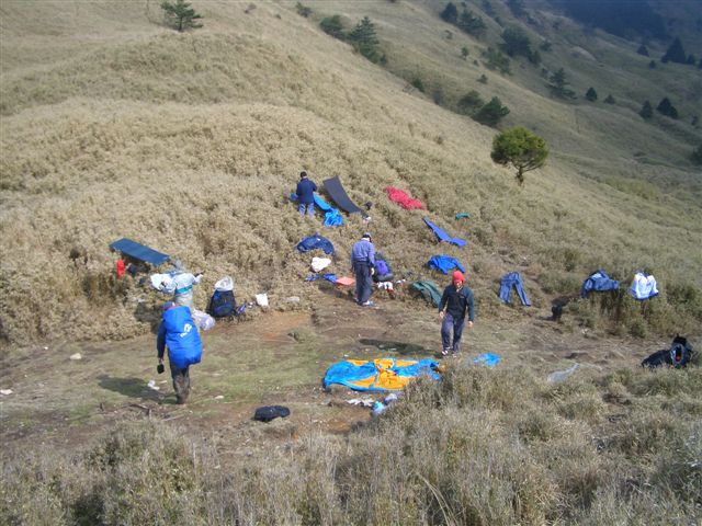 0500 起床,天氣不錯,風勢也緩和許多,天空還掛著一些星星,帳蓬已被徹夜的強風吹乾了,幸好昨夜只是一場短暫陣雨。