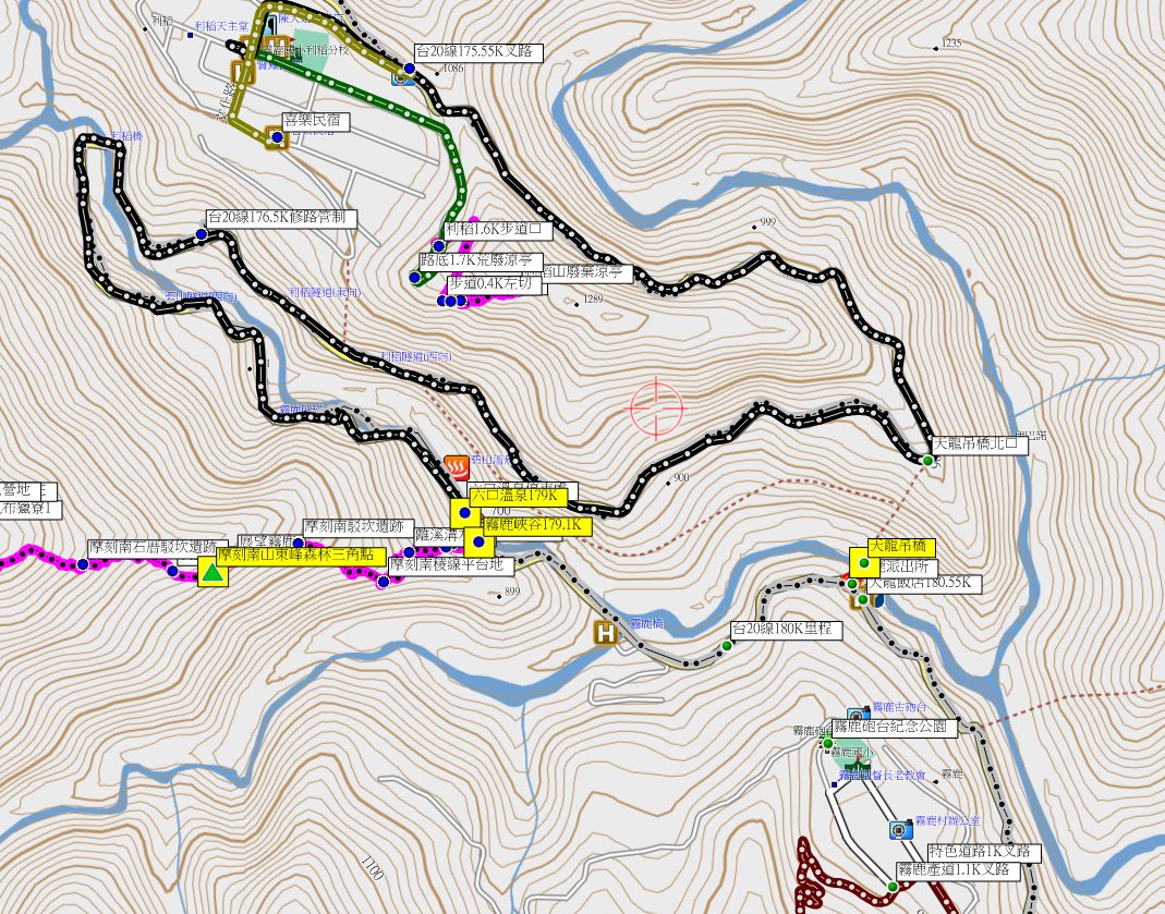 10/26早上走南橫由海端往西井方向行,沿途尋訪古蹟與南橫風景點;尋訪「關山大圳五雷鎮水碑及泰山石敢當」古蹟,暢遊關山大圳與初來抗日紀念碑、天龍吊橋、霧鹿峽谷與六口溫泉等南橫風景點。