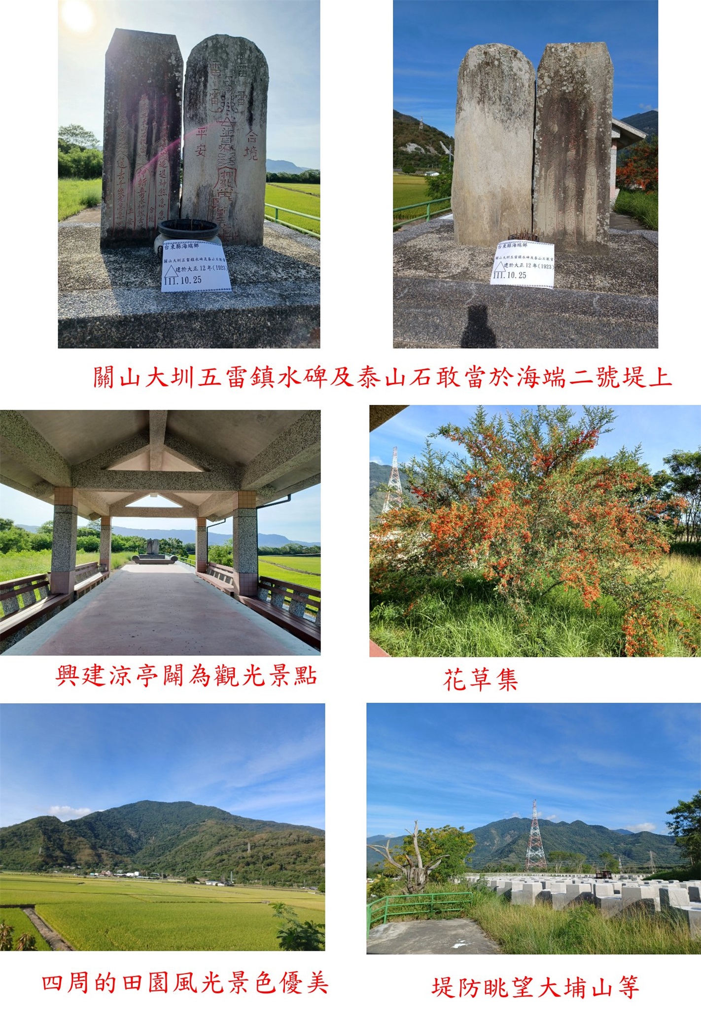 1、關山大圳五雷鎮水碑及泰山石敢當:於南橫海端入口的海端二號堤上