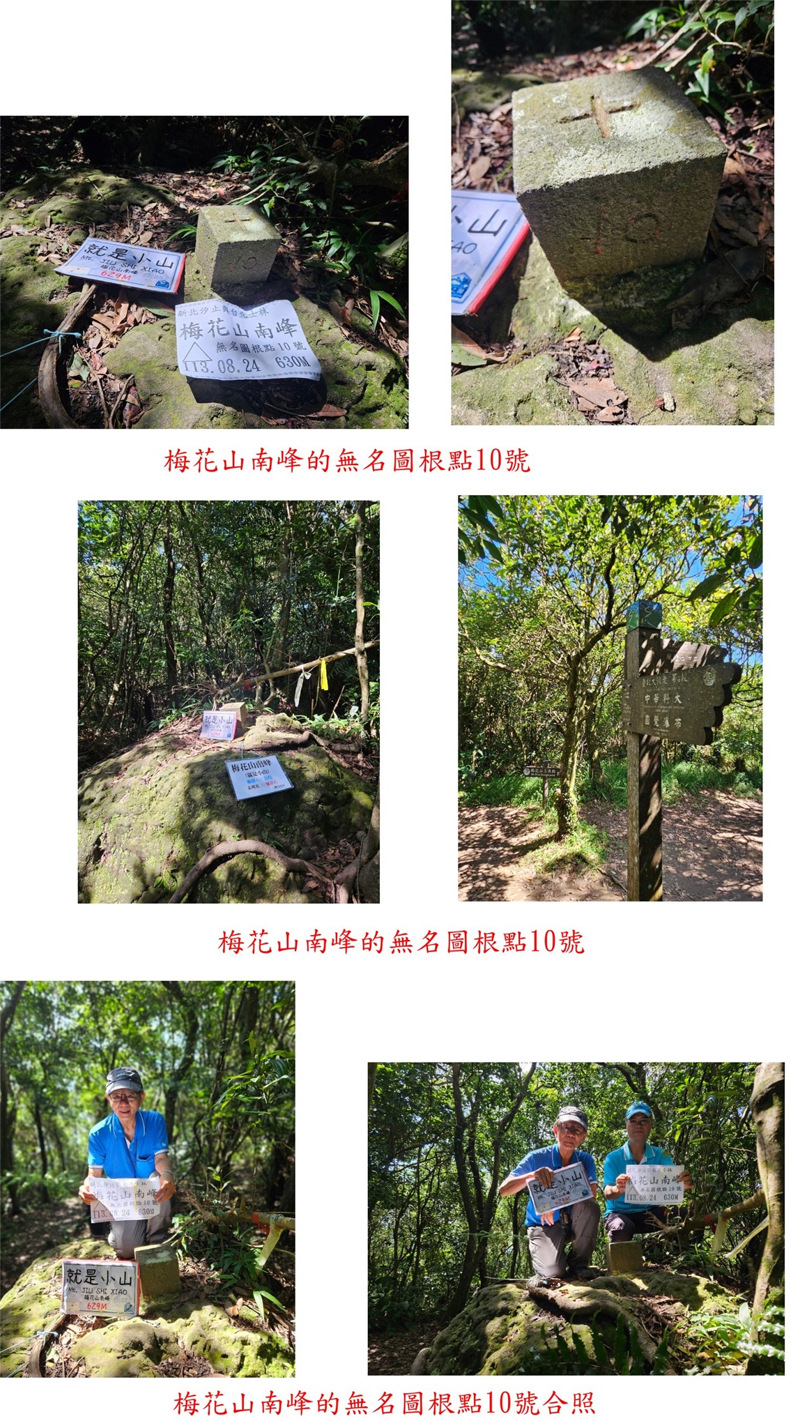 4、梅花山南峰:又稱就是小山,位於新北汐止與台北士林交界處,標高630公尺,無名圖根點10號;座標309799 2779918。
