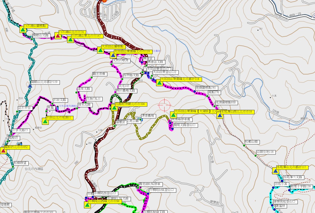 2、水尾潭山西北:位於新北汐止與台北內湖交界處,標高141公尺,北市市18號基石;座標3113302777483。
