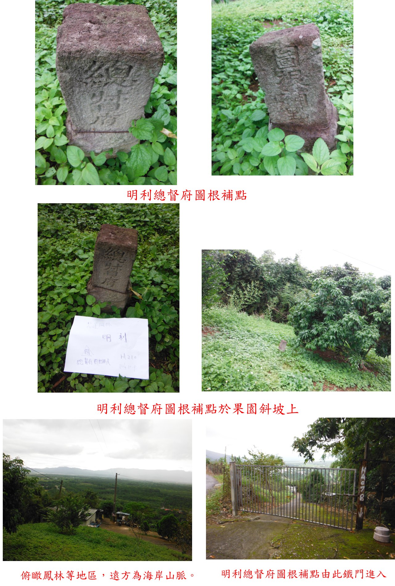 3、明利:位於花蓮縣鳳林鎮,標高210公尺,總督府圖根補點。