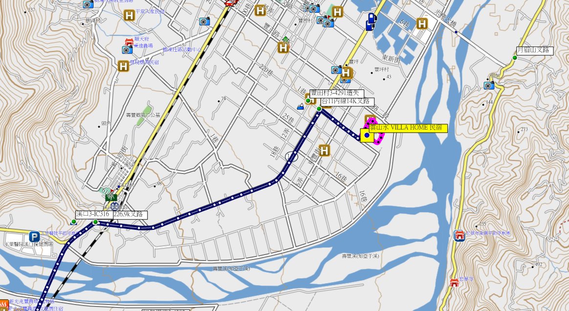 ◎林田山續往雲山水,回至台9線244K路口北向至約226.9K處,右轉台11丙線至14K處,右轉豐坪路走約0.8K抵達雲山水民宿,獨棟的出租度假別墅,景色優美,值得參訪;參觀後天色已晚,漫長的路程至台11線樟原山上的賽斯海民宿夜宿。