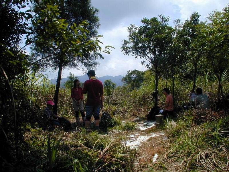 1045叉路口, 直走往哈盆營地, 左上往志良久山及福山植物園, 五個人討論後先往志良久山
