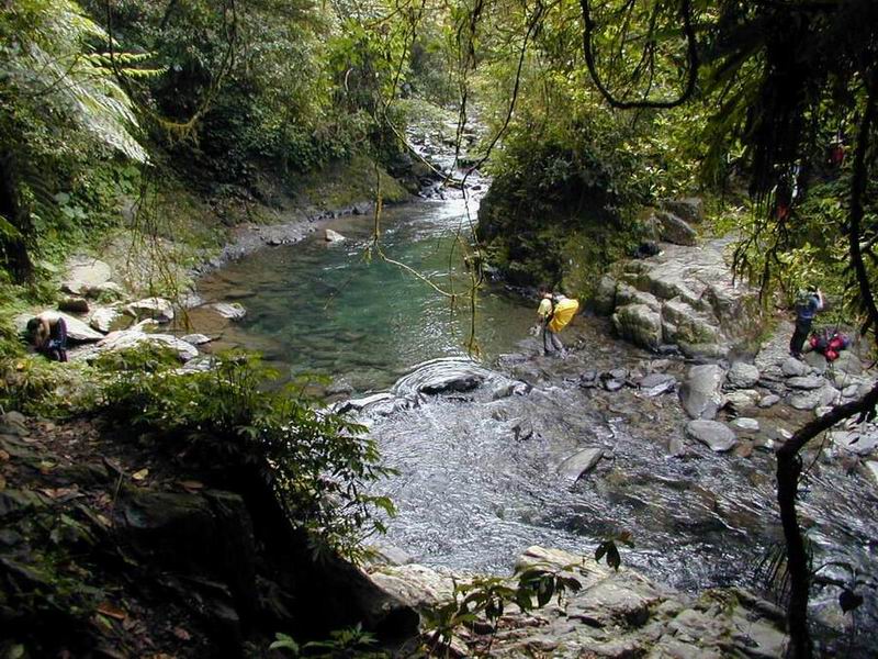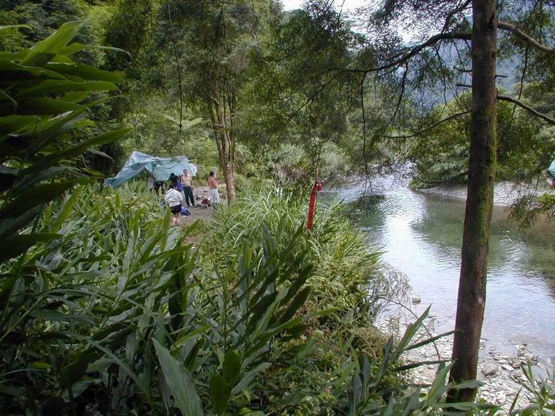 1235 哈盆營地到了, 猛男們早已下水清涼撩了幾趟了;別樂昏頭了, 這水還滿深的; 在此休息