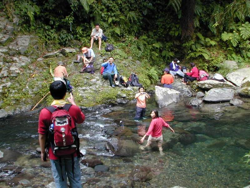 1025山友陸續跟來了, 一群昨晚在哈盆營地過夜年輕人打算在此納涼戲水一番
