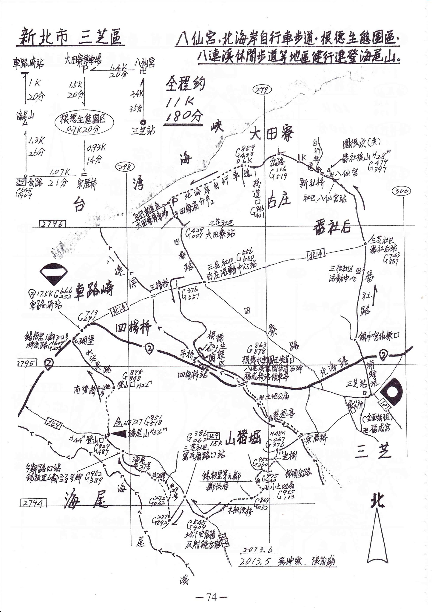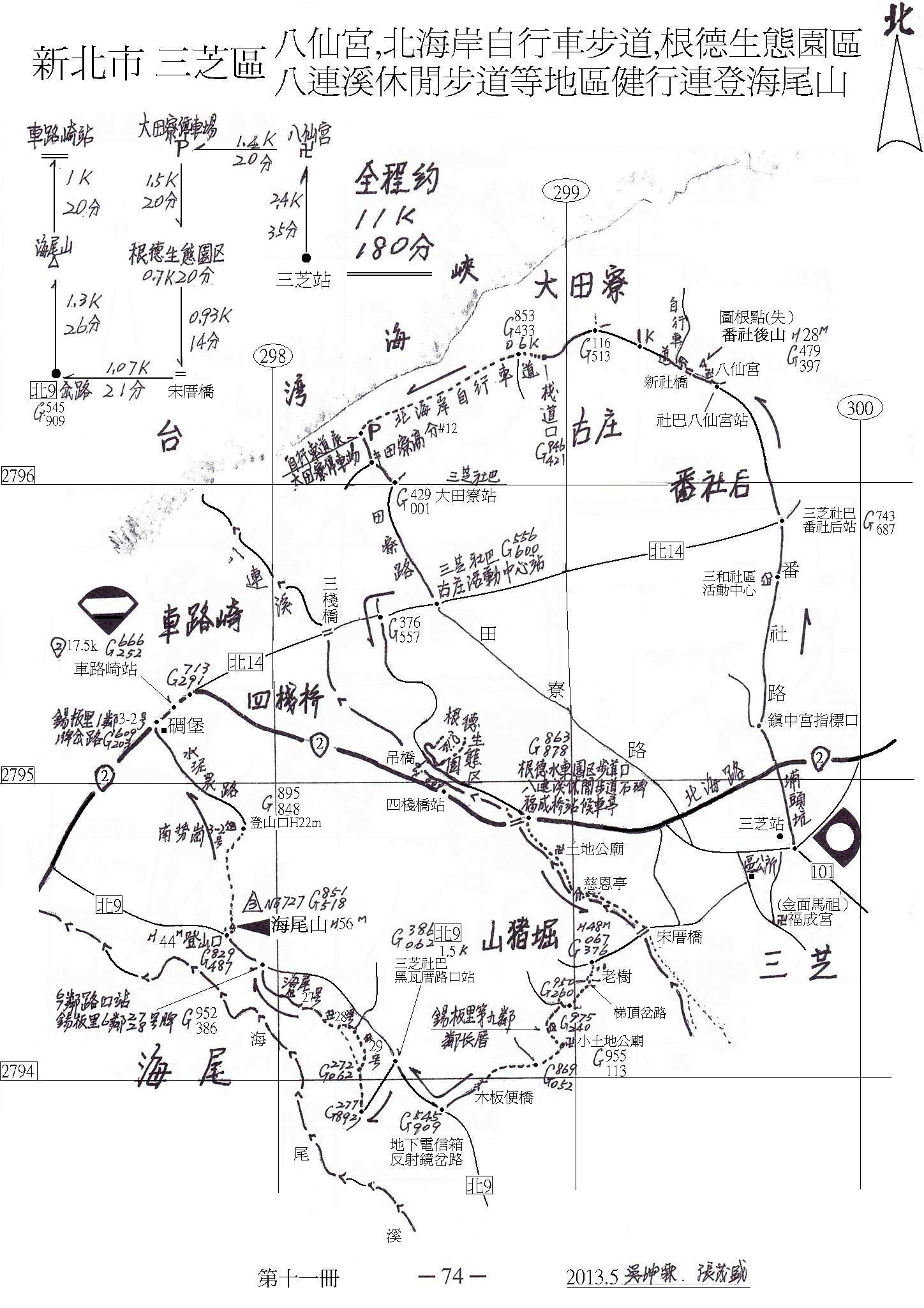 (十一074) 八仙宮、北海岸自行車步道、根德生態園區、八連溪休閒步道等地區健行連登海尾山
