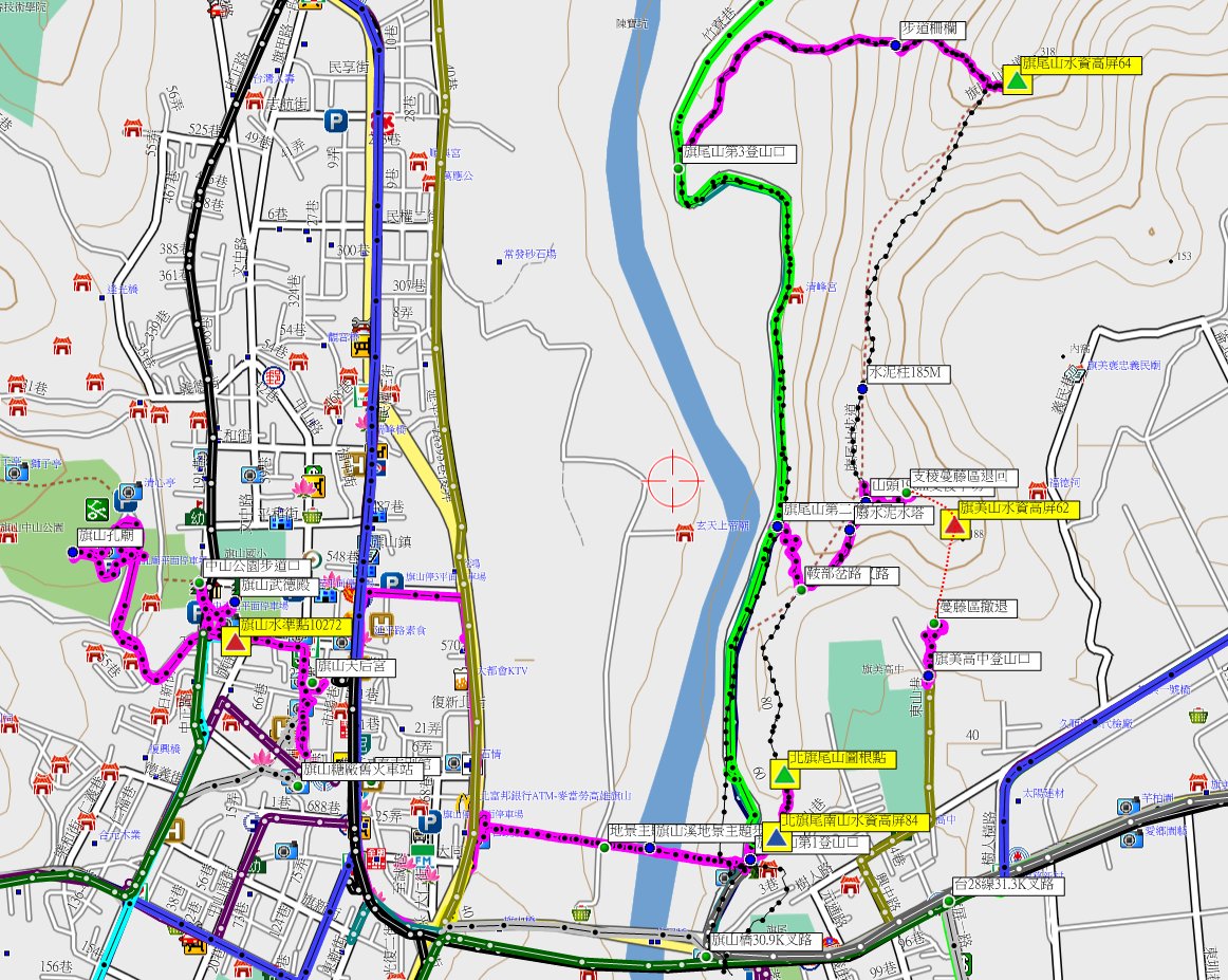 4、旗美山:位於高雄市旗山區,標高188公尺,水資會高屏62號三等三角點;座標197403 2532309。