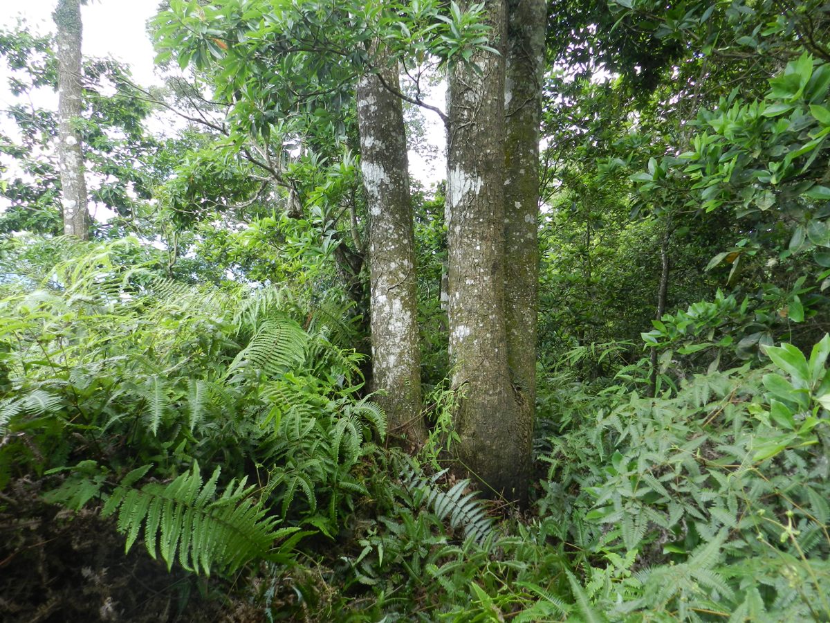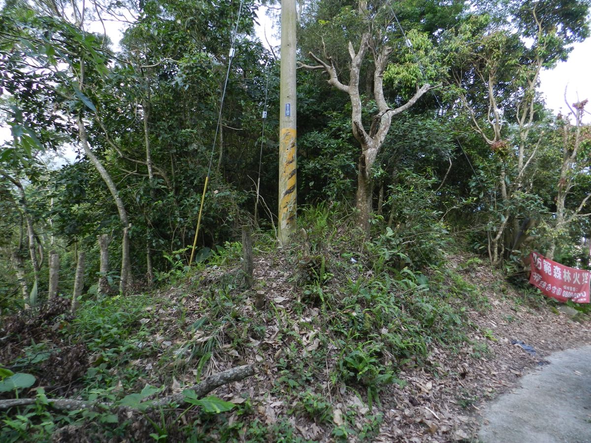 由暗影山的登山口,左轉沿左岔路向東北上山,走約1.1K可到工寮停車,左轉進入竹林,自行開路向東北方陡上,走約10分鐘可到最高點的芒萁樹林山頭,植披覆蓋在土上,很難尋找,找了20幾分鐘後放棄。