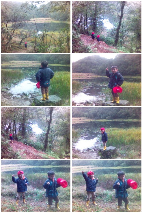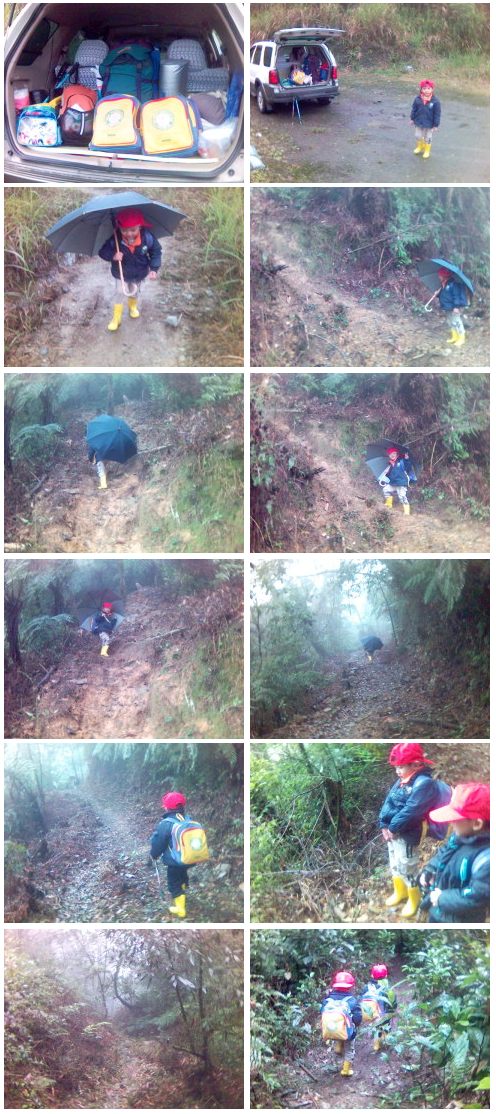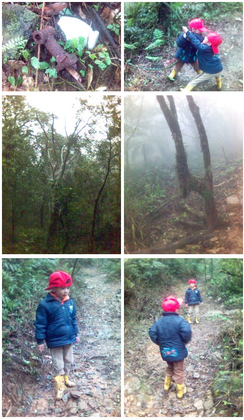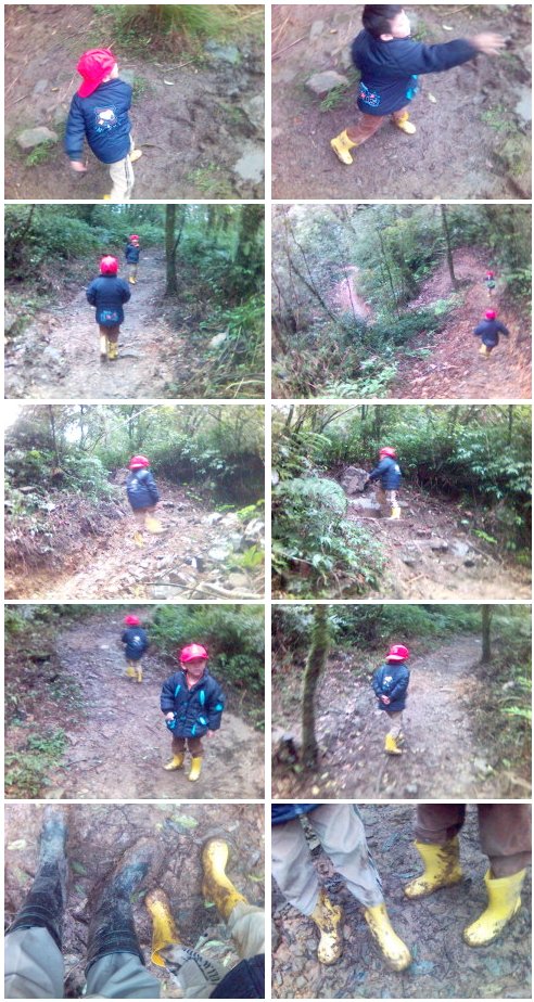 雨鞋探險去,山徑仍然泥濘不堪,偶有高階陡坡,小孩們