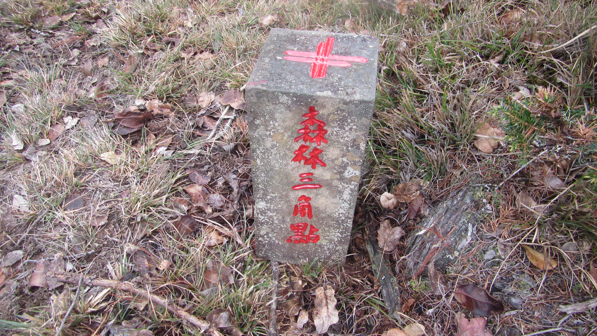 1225-1245 休息,從營地上來都是陡上,實在吃不消,開手機,但是沒收訊,趁休息,再補三角點油漆,下次來不知道是哪時候了