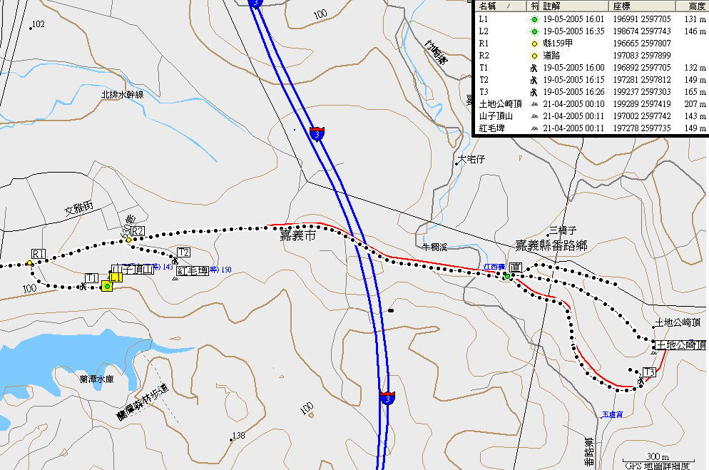 而紅毛埤走法類似山子頂山,東行縣159甲在"R2"處取右上行,大約是在"T2"的位置,