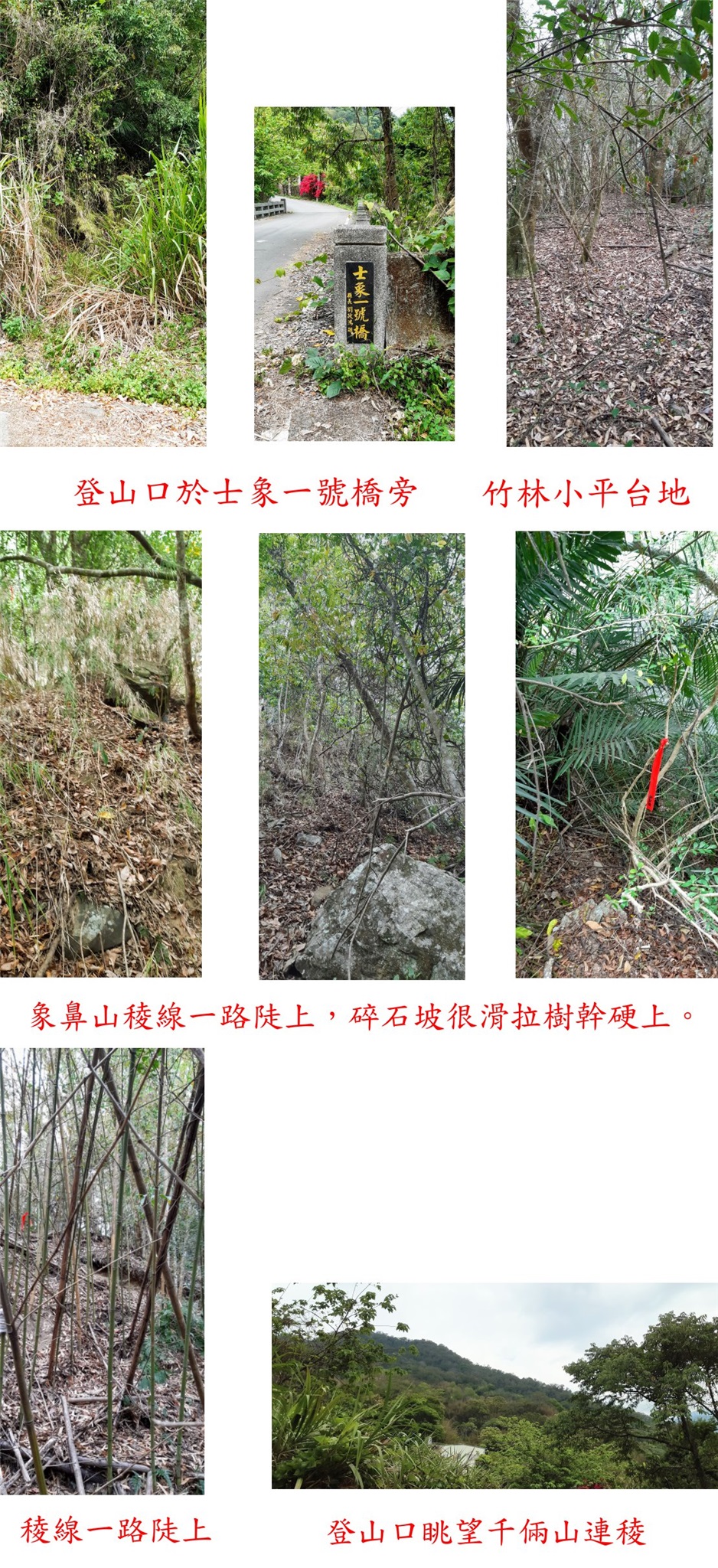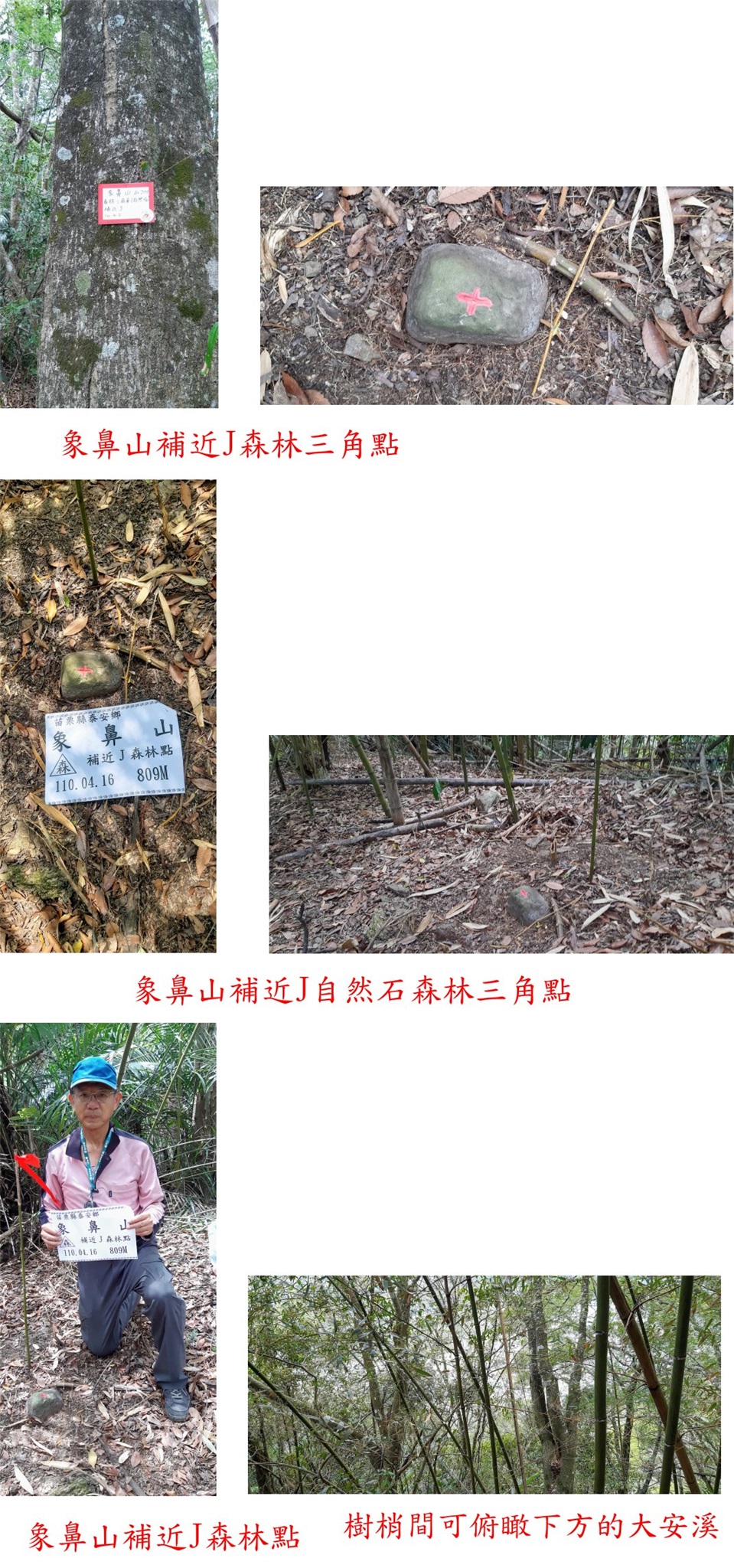 第3座為象鼻山補近J森林三角點,最近二度遠道來到泰安鄉的象鼻部落,登山口於士象一號橋旁,跟隨阿吉的路條一路陡上,山徑陡峭不好走,於肩稜處看到1顆很不顯眼刻有十字的自然石,此點係文達兄新找到來補,直線只有