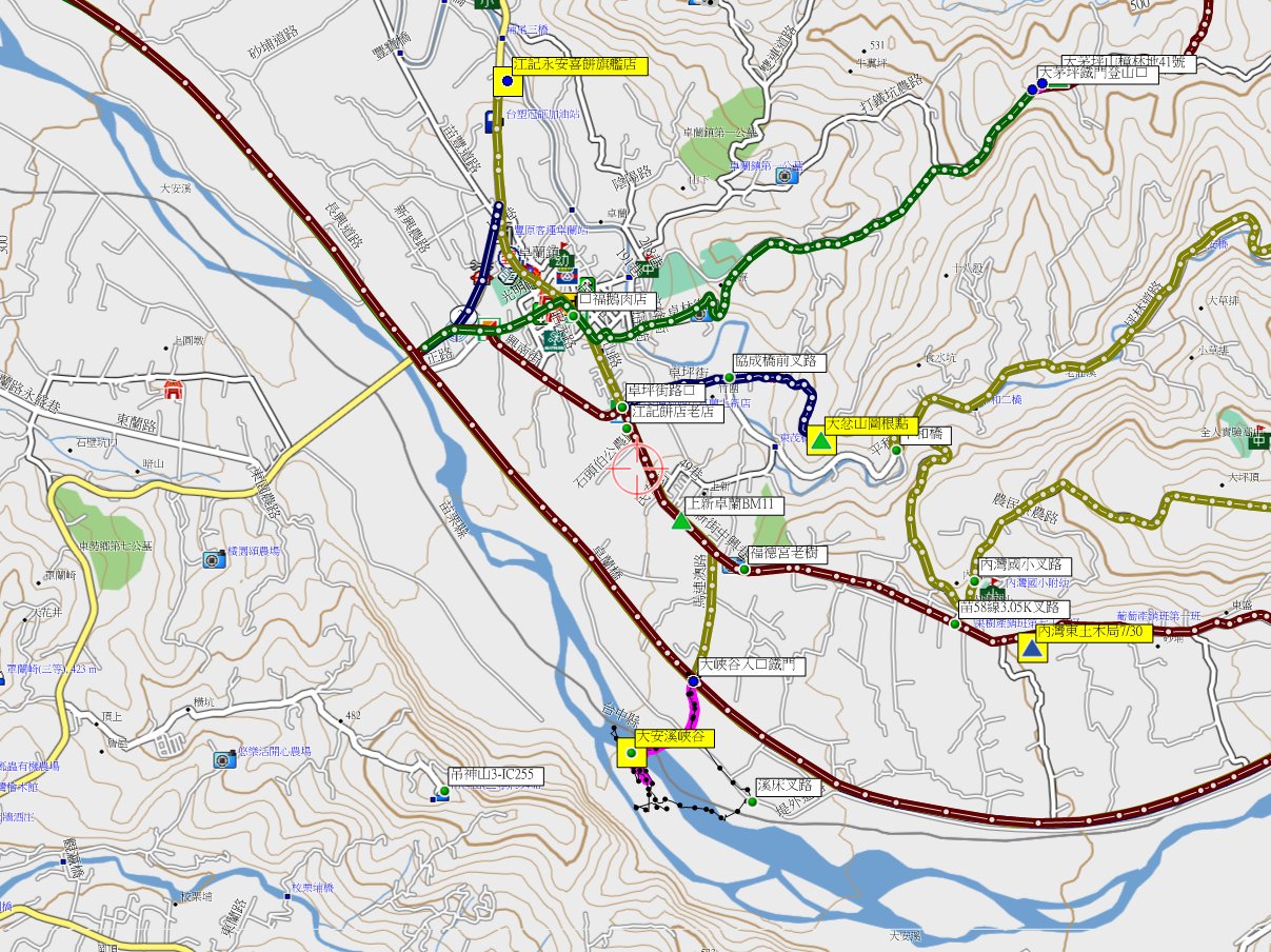 早上順路遊覽了大安溪峽谷、江記永安喜餅旗艦店、士林壩與追分車站等幾個風景點。
