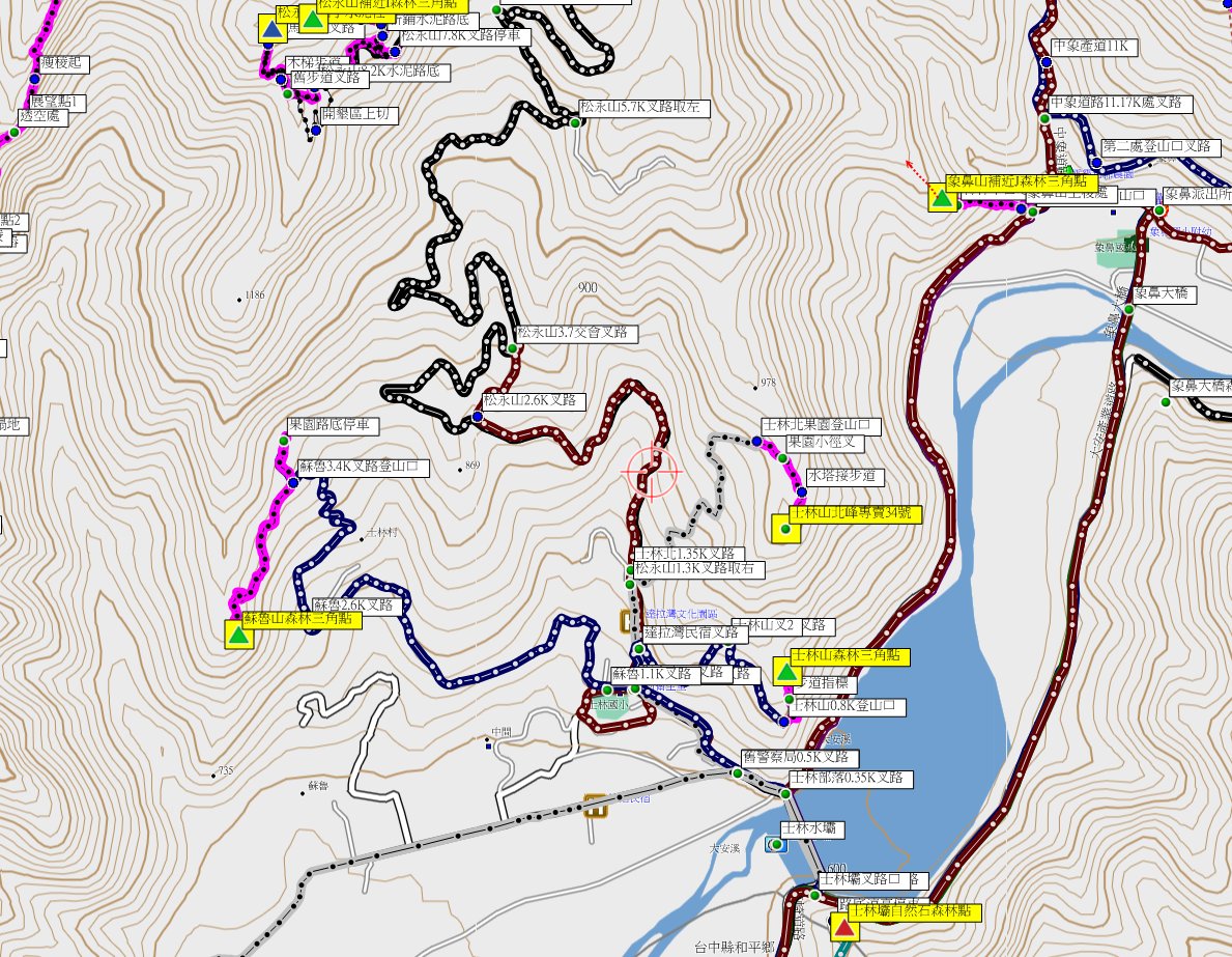 3、象鼻山:位於苗栗縣泰安鄉,標高786公尺,補近J自然石森林三角點;座標2431782695201。
