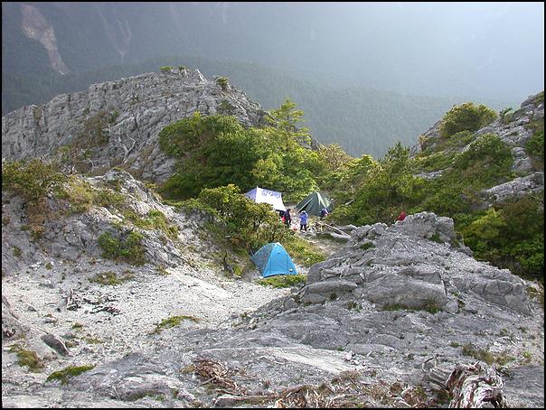 0815太魯閣北鞍營地4T*10(營地分上下兩層.兩層中間隔著一叢箭竹.來路進入下層.來路入口往東方向(營地下方)約10公尺上切為往平安池.再往東有一入口下切為取水路.).---今天天氣真熱。