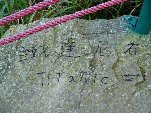08:52~08:57 拉繩陡上段一,相當的陡,中間處有一巨石有山友書寫〝鐵達尼石〞,挺有趣的,拍個照留念