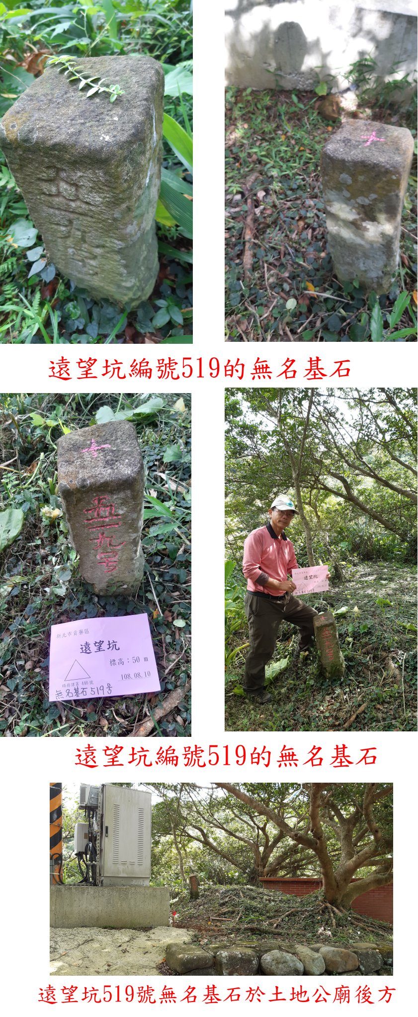 土地公廟後方有顆不知名519號石柱,此點明顯易見,距離約