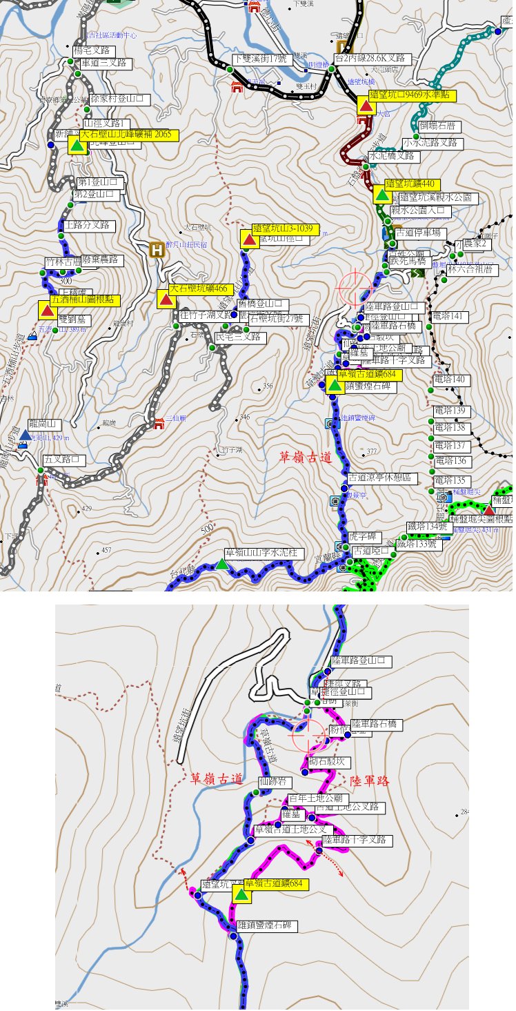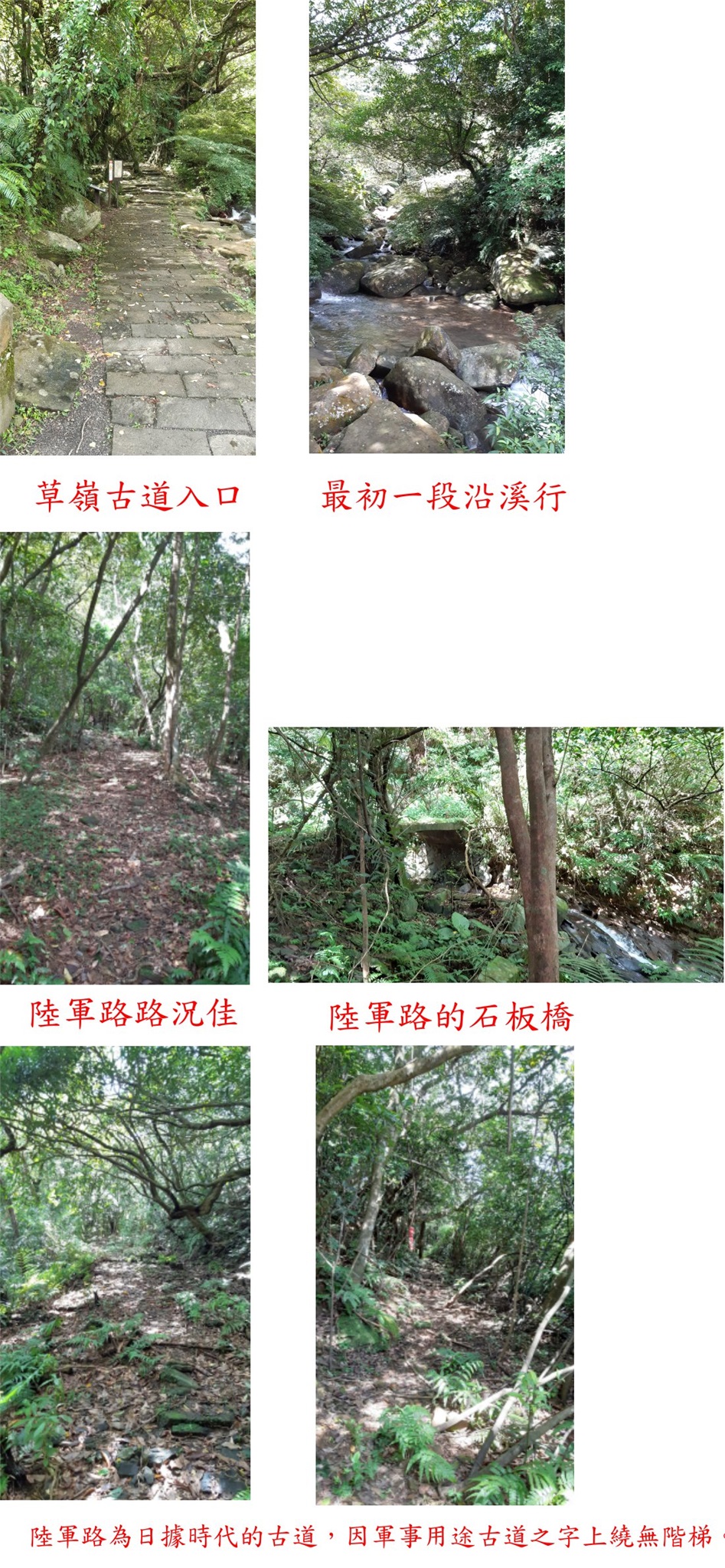 3、草嶺古道:又稱陸軍路,位於新北市貢寮區,標高235公尺,鑛務點第 684號基石;座標3425582765321。