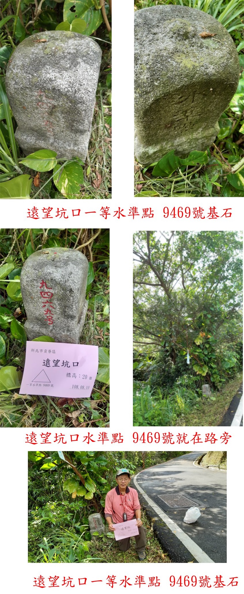 前方路左即見到遠望坑口一等水準點 9469號,基石於路旁剛除過草明顯易見,此點11年前即曾來過爾後路過又拍過數次,樹上有個大螞蟻窩清理時被咬了好幾下。