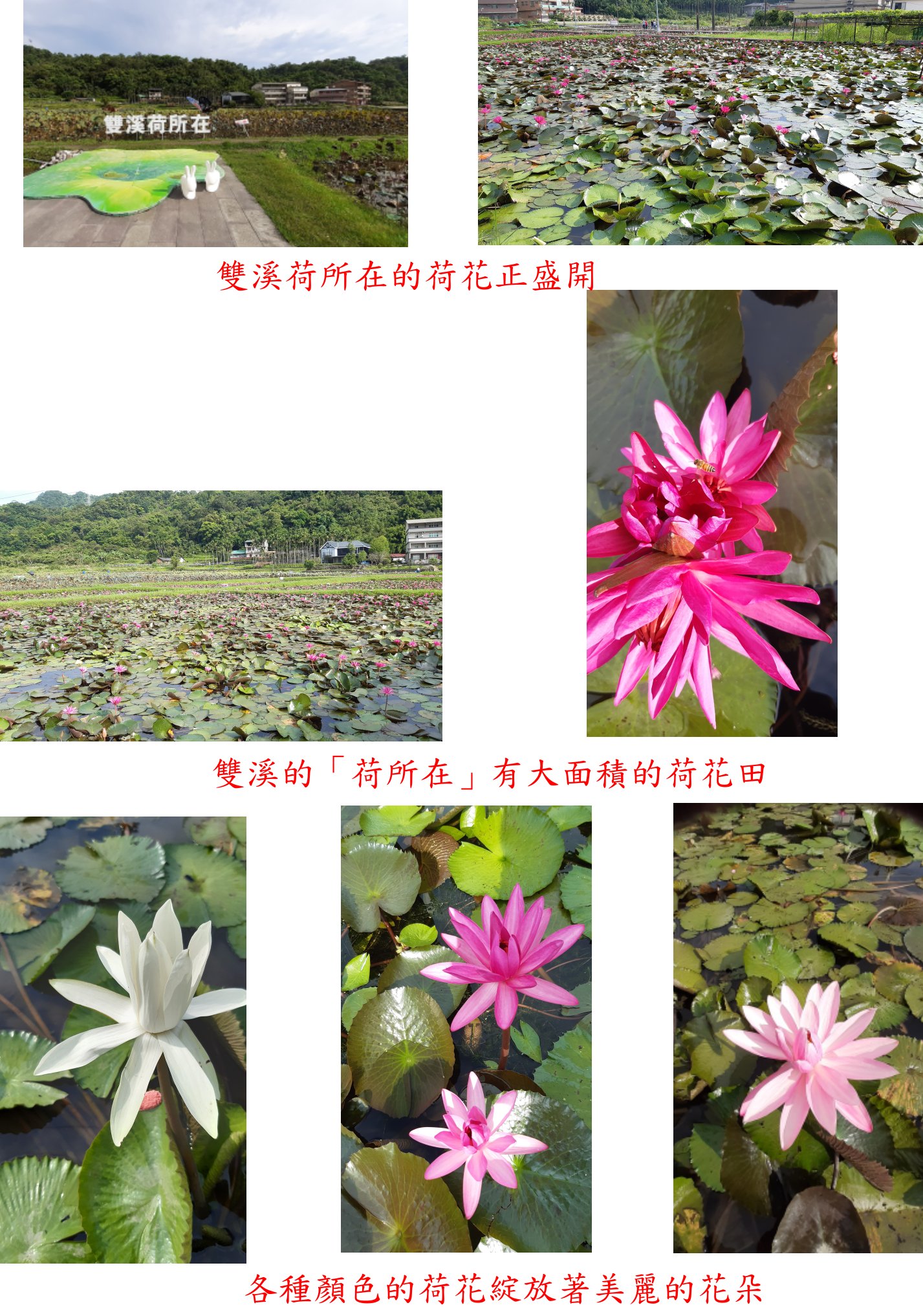走國道1號北行至八堵右轉台62號道路至暖暖,接到台2丙線往雙溪方向走16.3K【16.4K處】,路左雙溪的「雙溪荷所在」荷花盛開,臨時起意去拍幾張照片,路旁「農產市場」後方有大面積的荷花田,睡蓮正盛開,各種顏色的荷花綻放著美麗的花朵,還有水鳥與魚兒悠遊景色迷人,蓮花則已過了花期只剩下零星的花朵;拍照後續走台2丙線往貢寮方向走12.2K叉路【28.6K處】,右轉產道往草嶺古道方向走0.4K於遠望坑街39-1號民宅旁停車。