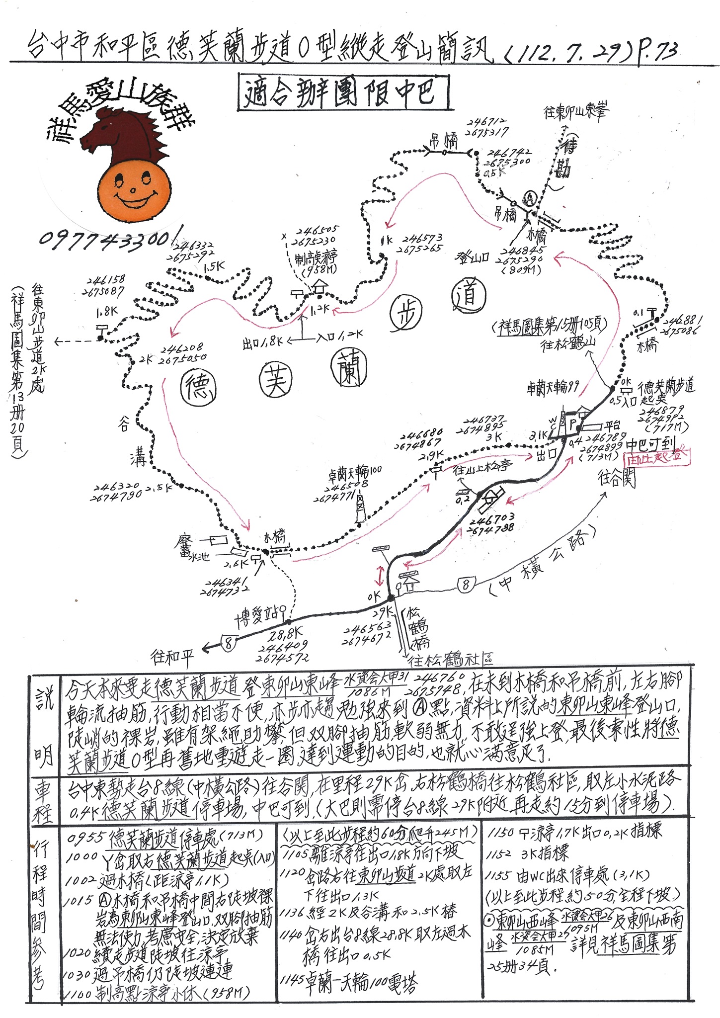 1台中和平走台8線往谷關,在里程29k十字路岔,取左往德芙蘭步道