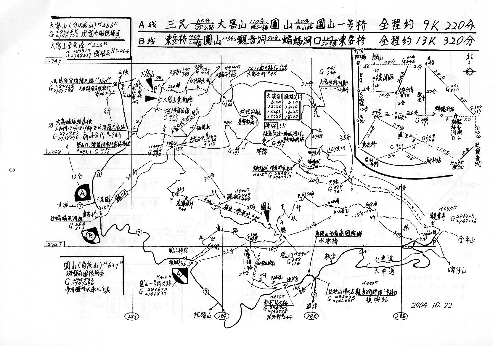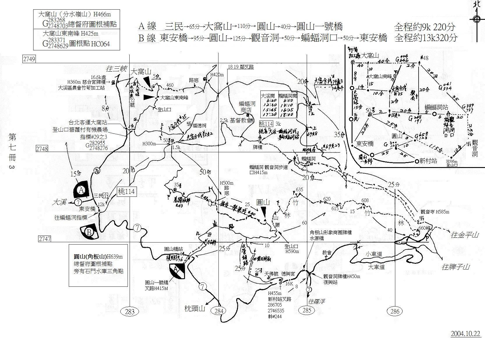 藍天圖集[7]A線(三民-大窩山-圓山-圓山一號橋),B線(東安橋-圓山-觀音洞-蝙蝠洞口-東安橋) 2004年