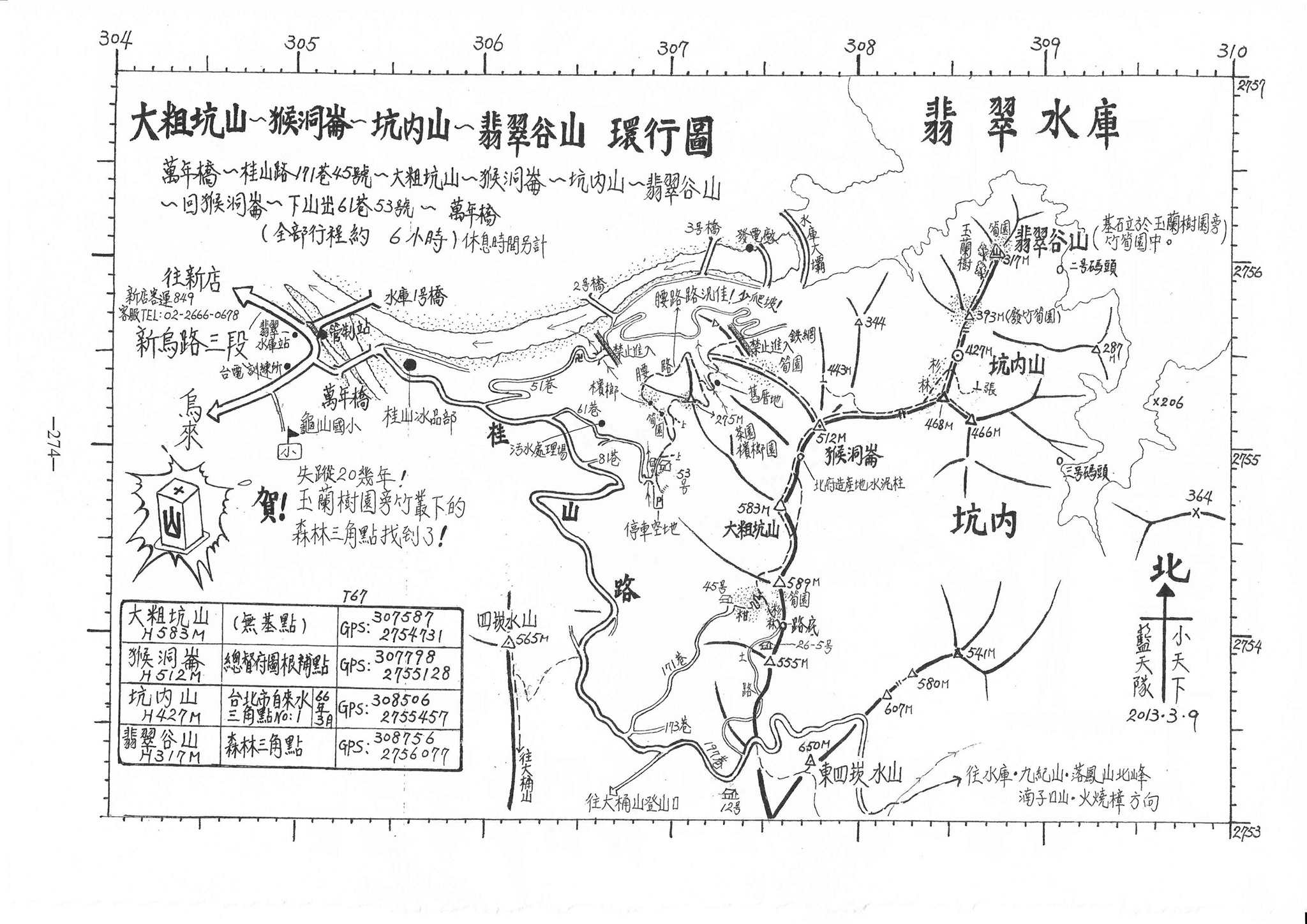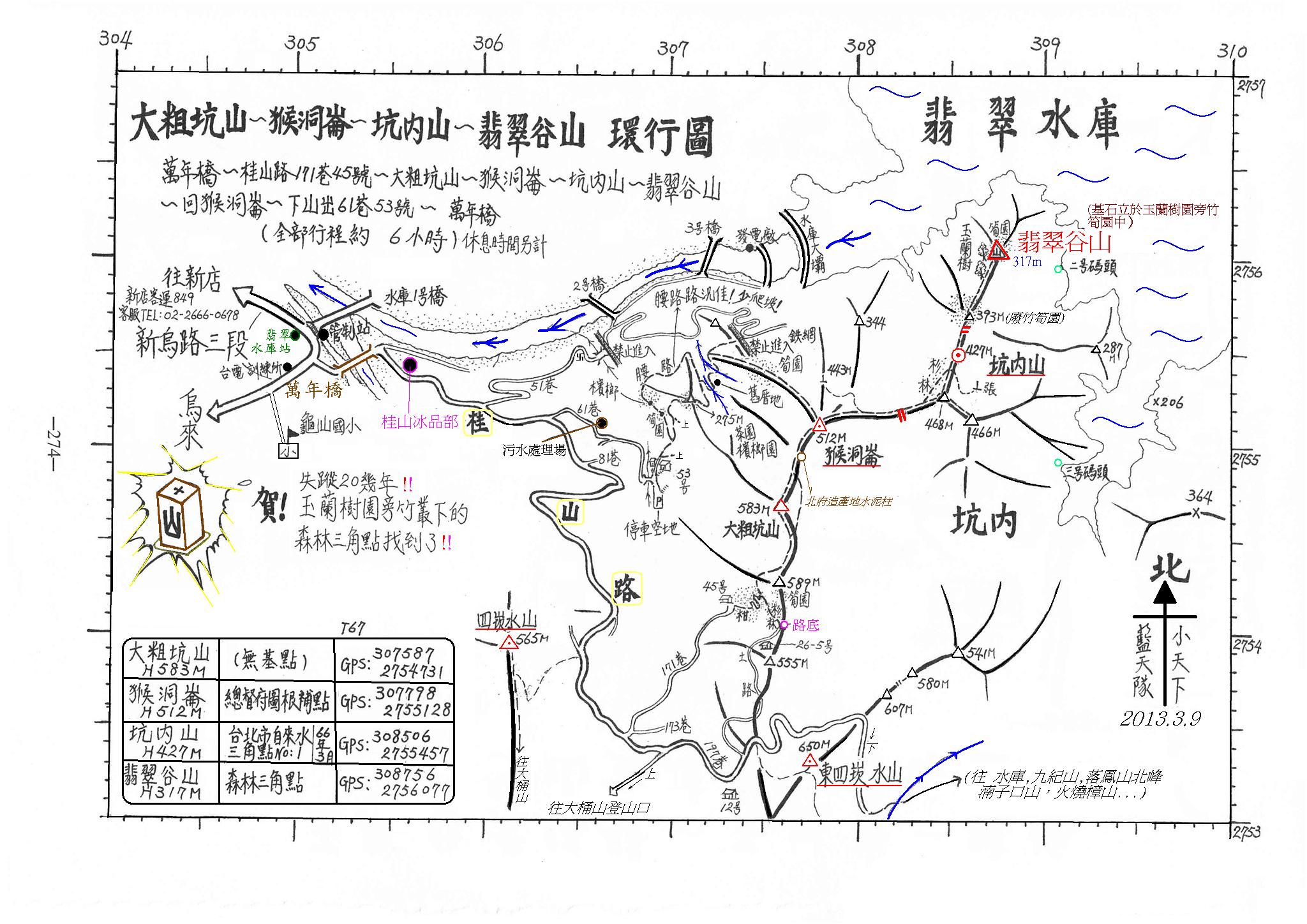 (十274) 大粗坑山~猴洞崙~坑內山~翡翠谷山環行圖2013年