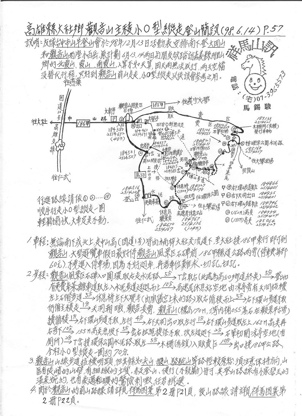 十一57-高雄縣觀音山主稜小O型縱走登山簡訊(98.6.14)