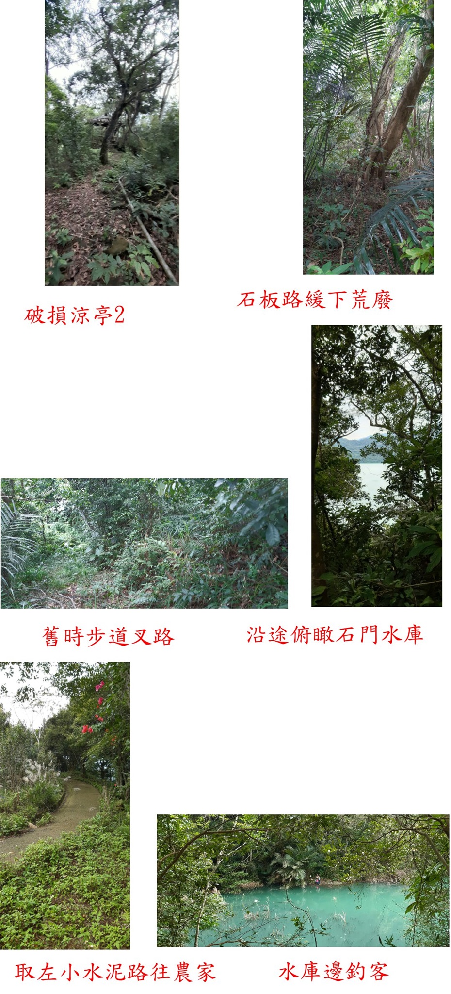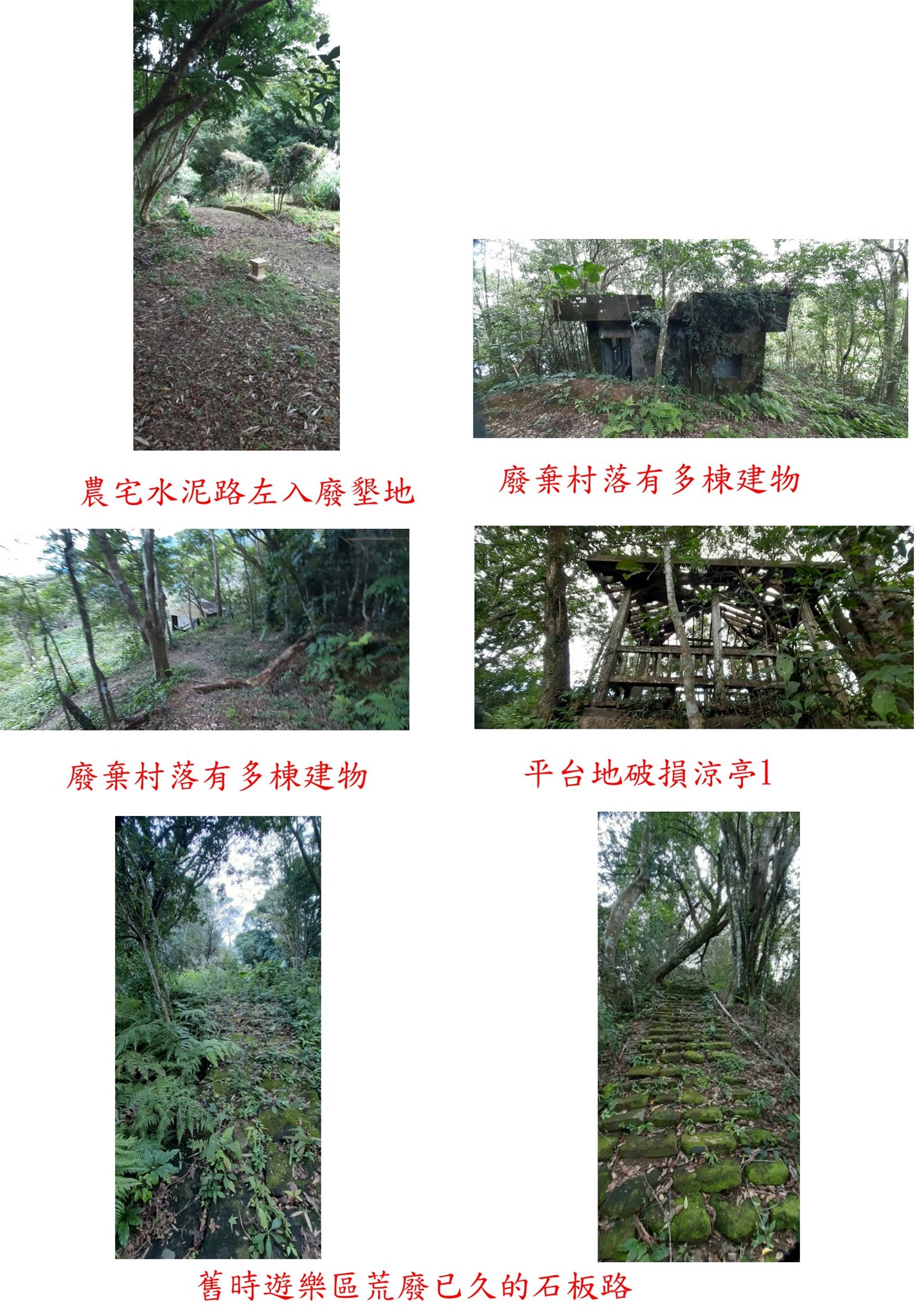 10:25平台地破損涼亭1,接到舊時遊樂區荒廢已久的石板路走75公尺。