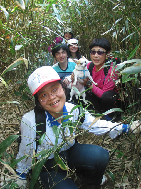 1354--1356 回到十字叉路,領隊徵詢想走稜線路的人,結果連我共六位山友外加一隻小狗,取左走大崙稜線步道,其餘循原路下山。